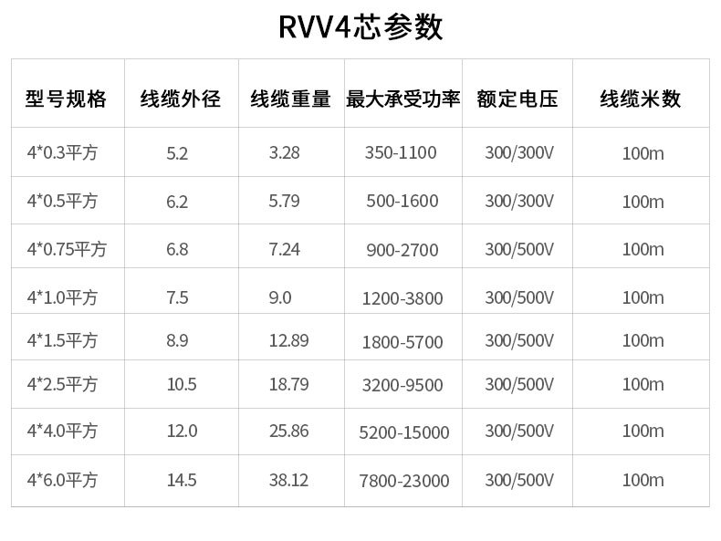 • 순수 구리 코어 RVV 4 코어*0.3 평방