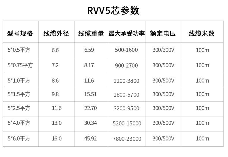 • 순수 구리 코어 RVV 5 코어*6 평방