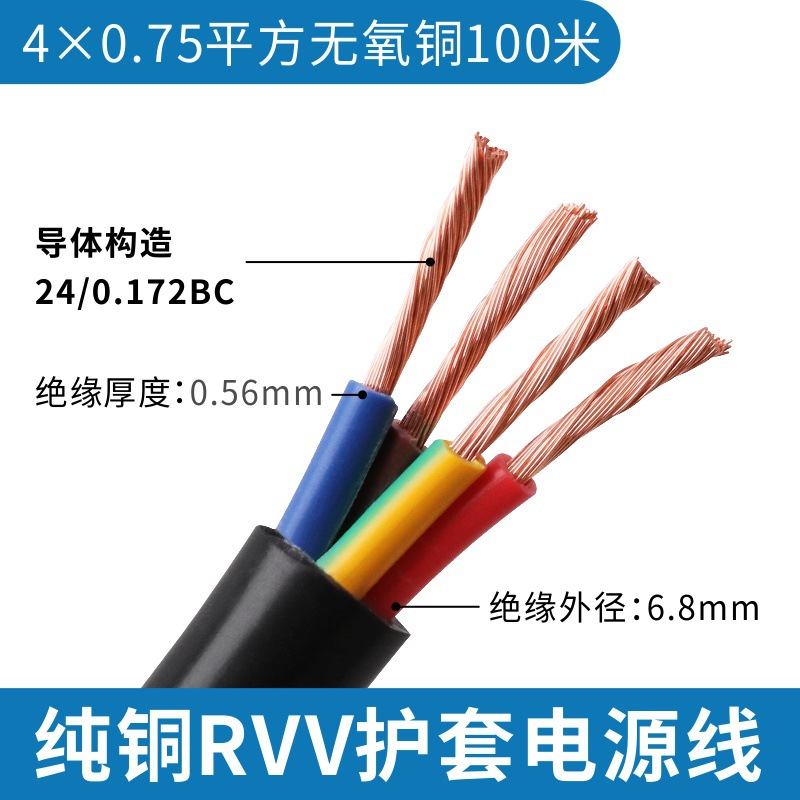 • 순수 구리 코어 RVV 4 코어*0.75 평방