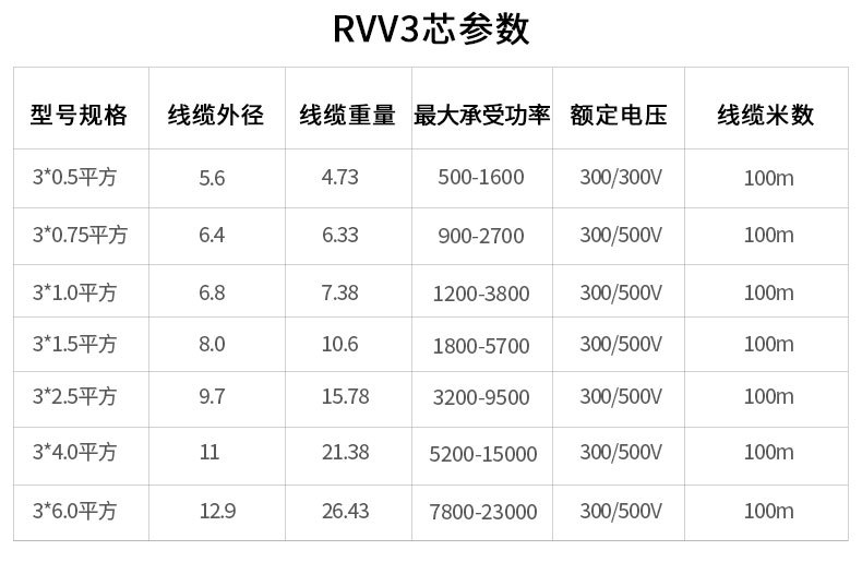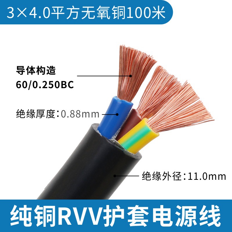 • 순수 구리 코어 RVV 3 코어*4 평방