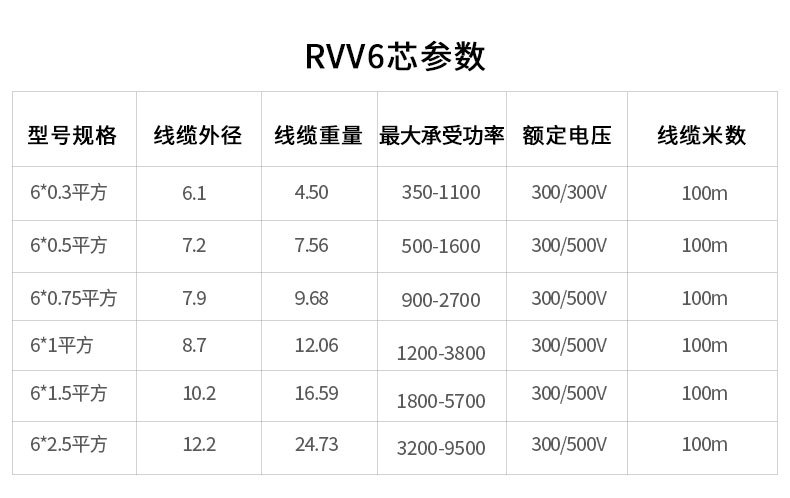 • 순수 구리 코어 RVV 6 코어*6 평방