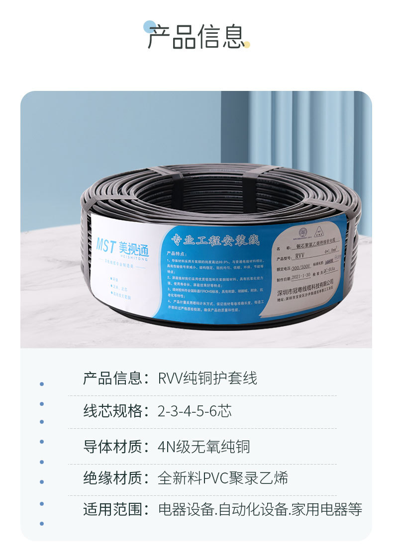 • 순수 구리 코어 RVV 4 코어*0.5 평방