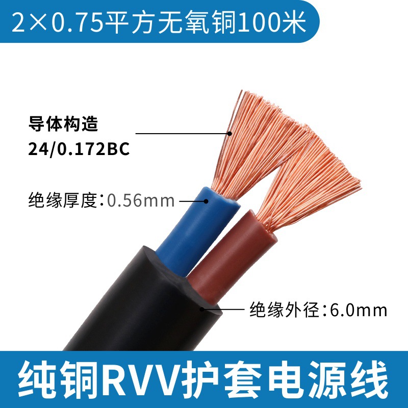 • 순수 구리 코어 RVV 2 코어*0.75 평방
