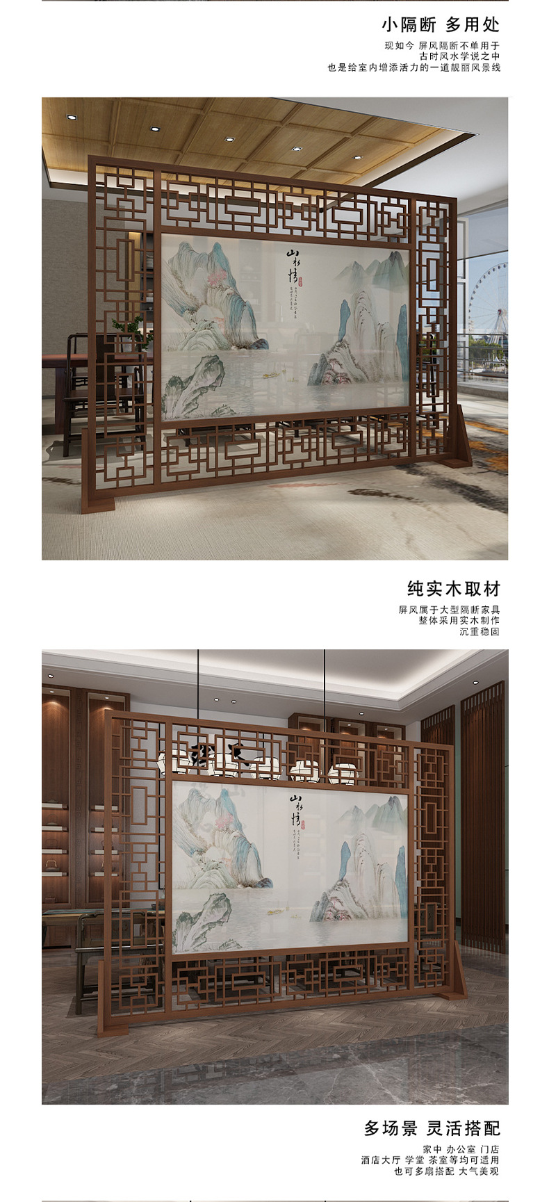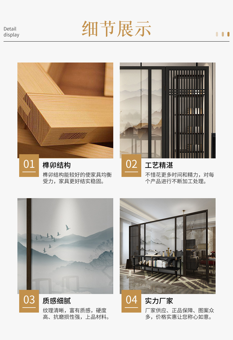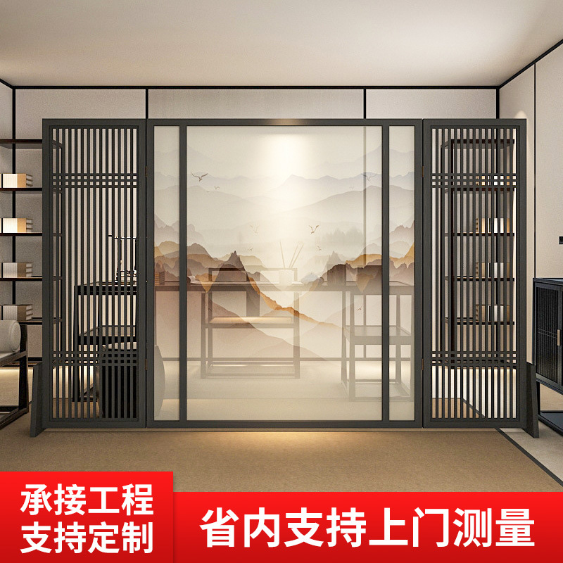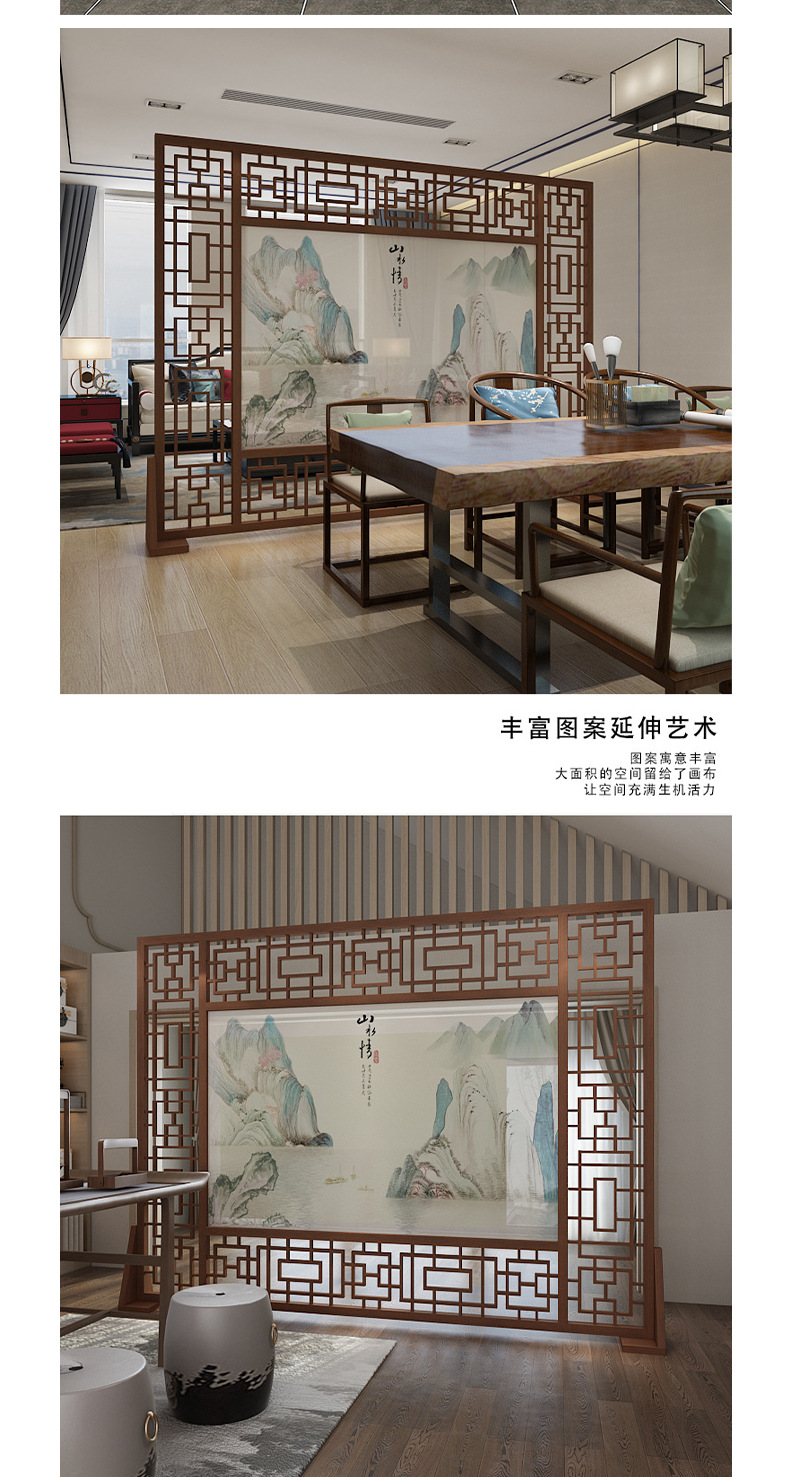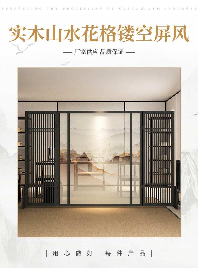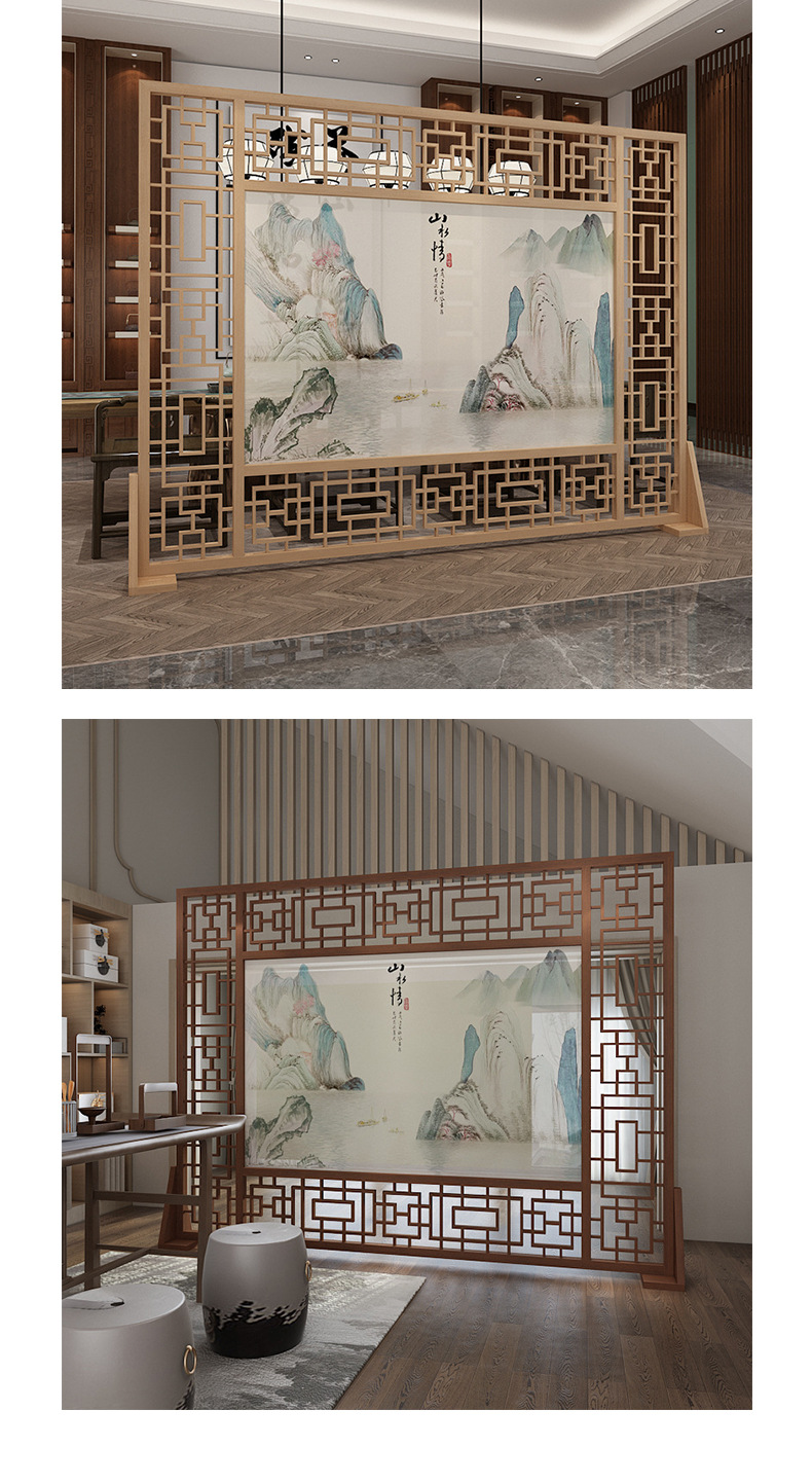 새로운 중국 스타일 스크린 파티션 거실 입구 호텔 홀 빌라 배경 벽 반 벽 단단한 나무 중공 시트 스크린