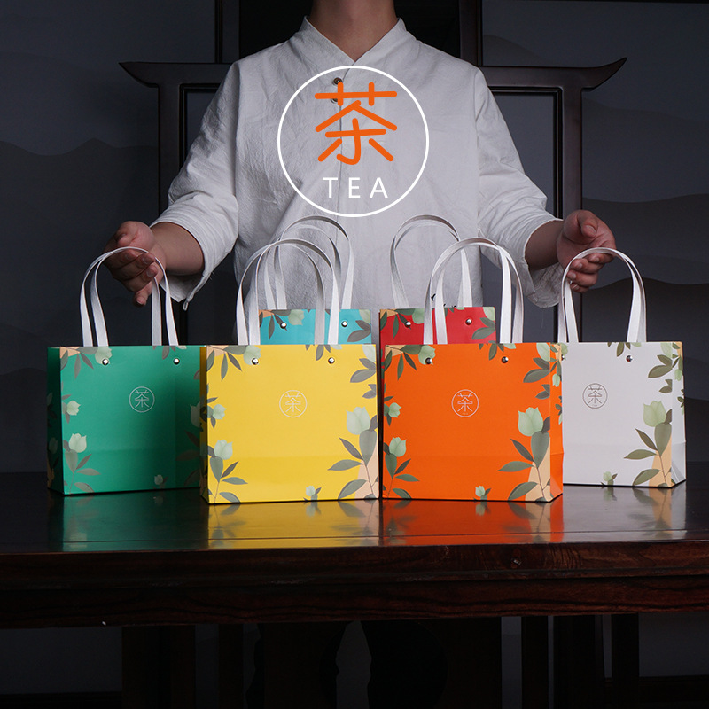 범용 신형 백색 카드지 휴대용 가방, 차 외포장 가방, 기념품 선물 가방, 인쇄된 기성품, 봄차스토어 가기