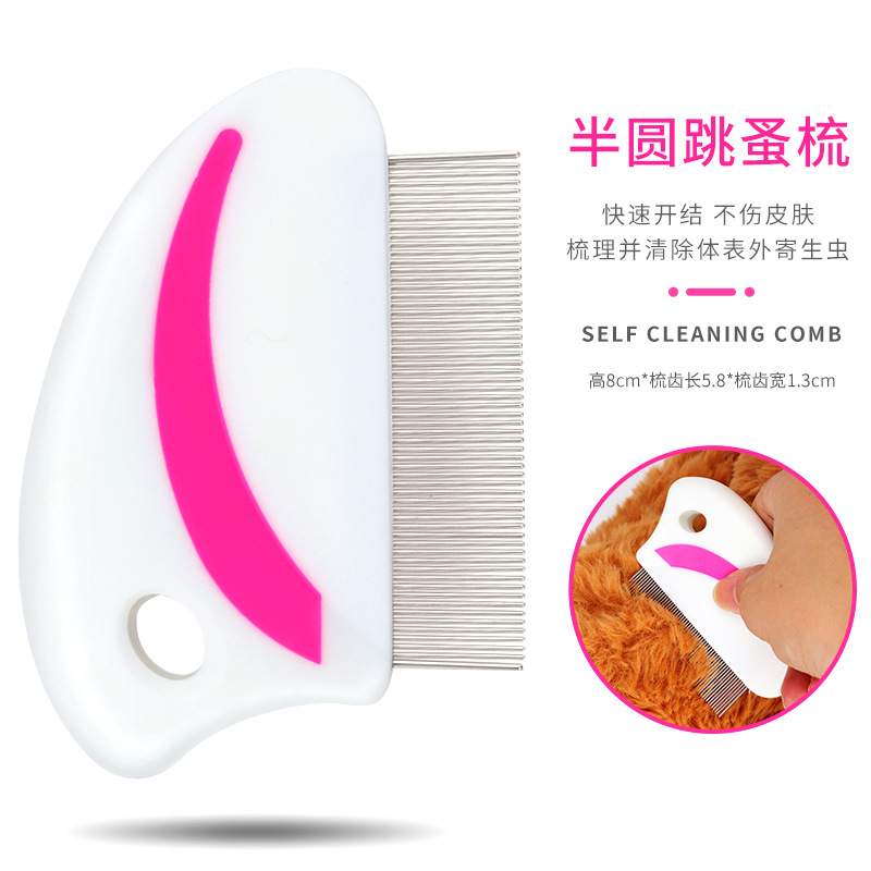 • 반원형 벼룩 빗-핑크 가장자리