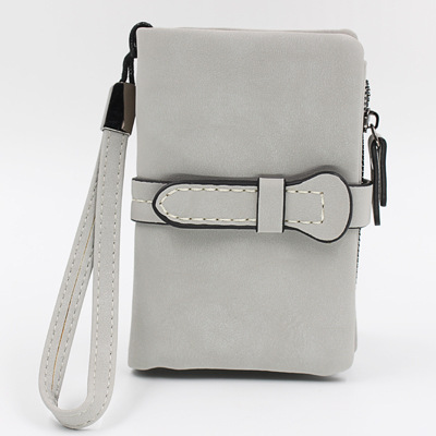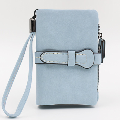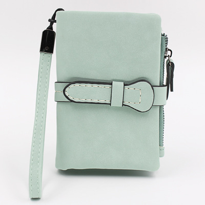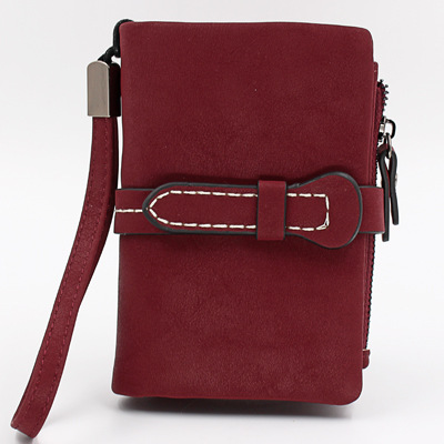 钱包女短款欧美复古PU磨砂五金叶子搭扣拉链折叠多功能学生零钱包