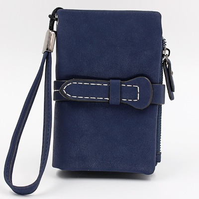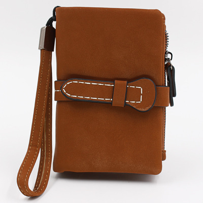 亚马逊跨境外贸爆款女长款钱包欧美复古磨砂拉链搭扣大容量三折包