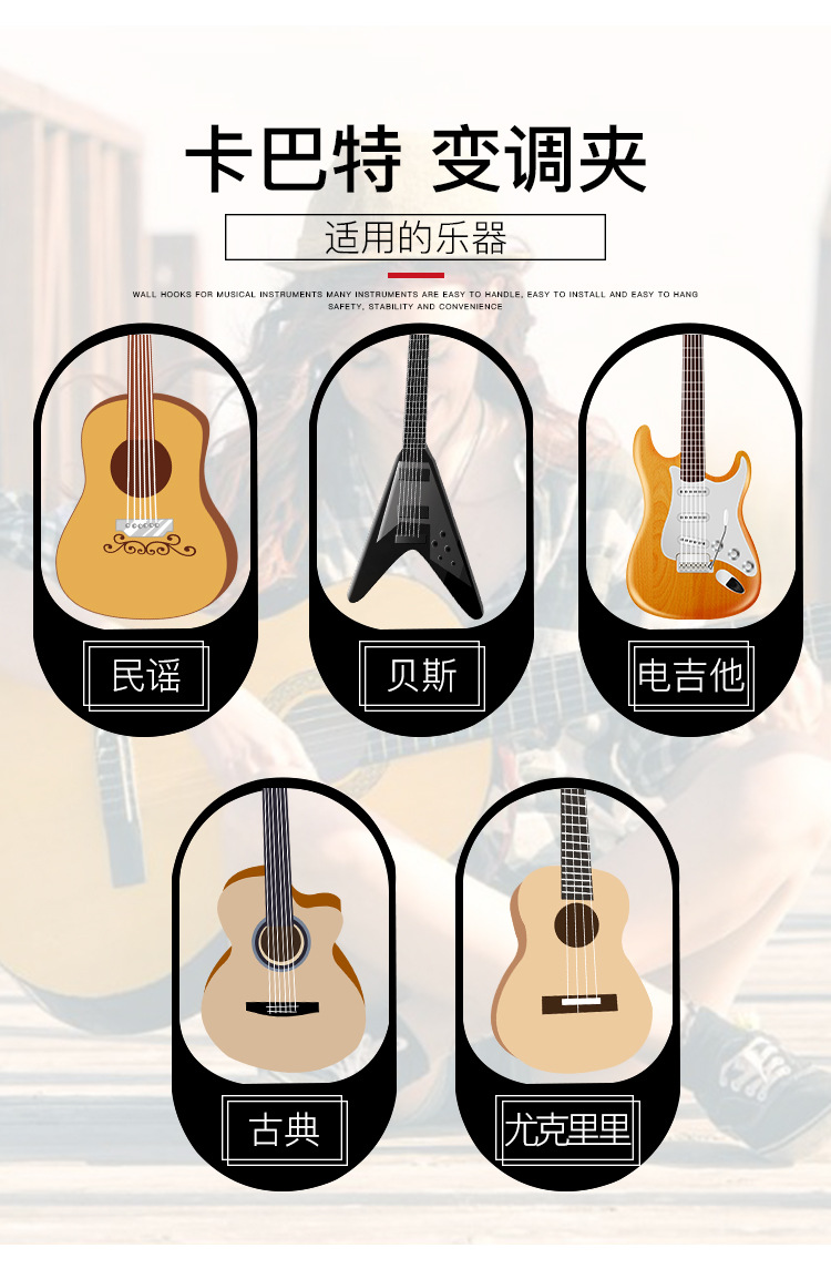 기타 가변 톤 클램프 포크 기타 플라스틱 가변 톤 클램프 전기 우드 기타 작은 손 잡기 Ukulele 가변 톤 클램프