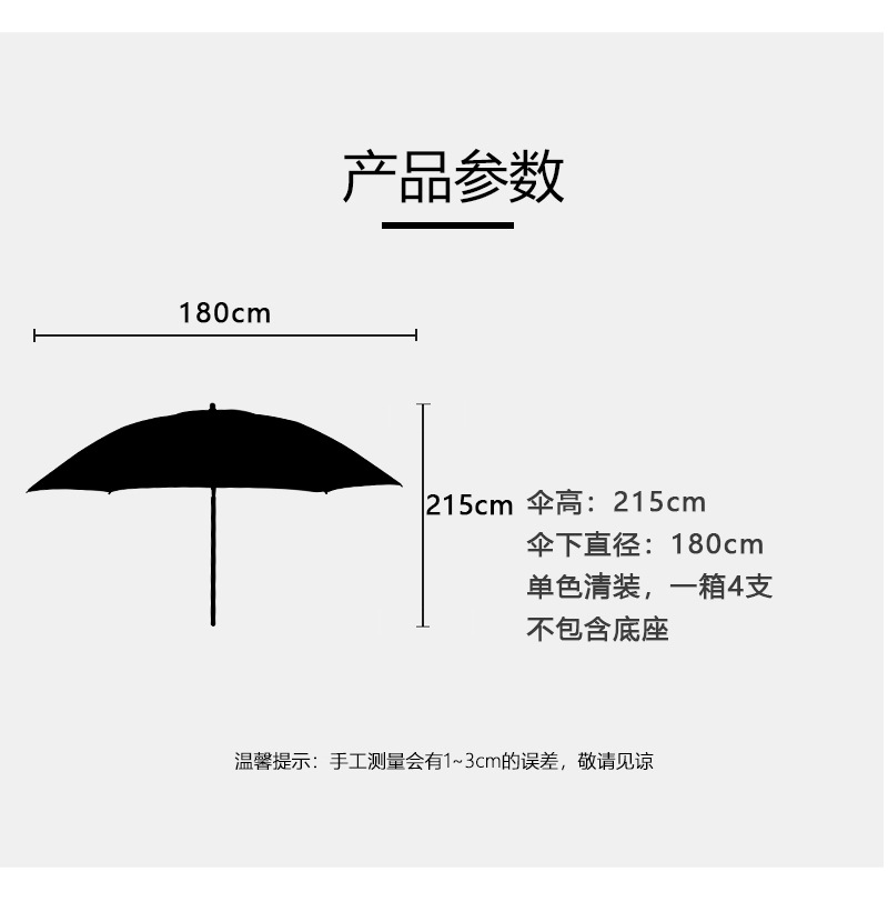 • 약 180cm * 우산 높이 약 215cm * 8 뼈의 우산 지름 아래
