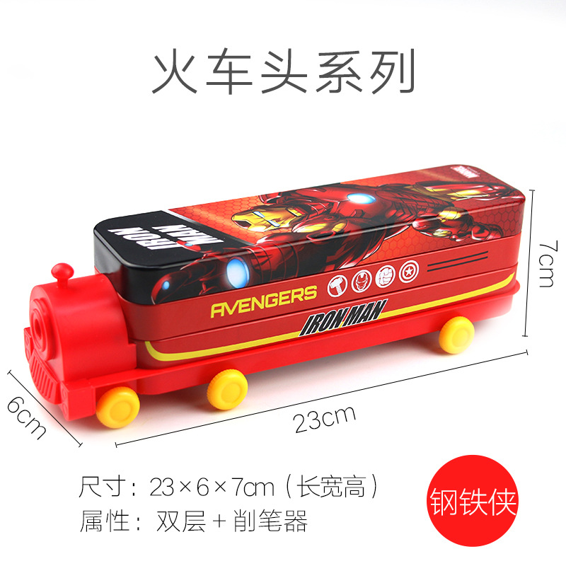 아이언 맨 만화 어린이 연필 상자 소년과 소녀 유치원 학생 다기능 철 2 층 틴플레이트 보관 상자스토어 가기