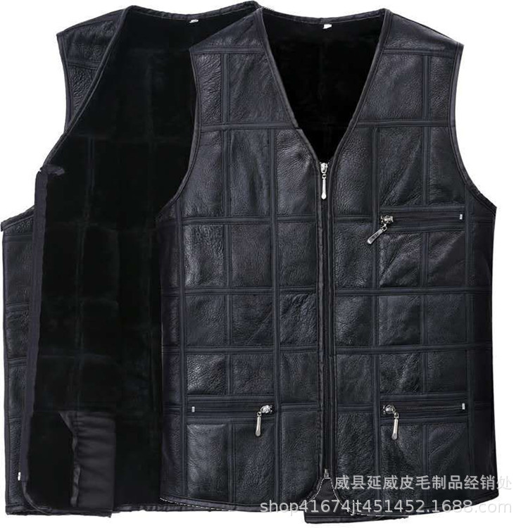 공장 도매 가을과 겨울 중년 및 노인 조끼 모피 1 남성 가죽 양복 조끼 양모 조끼스토어 가기