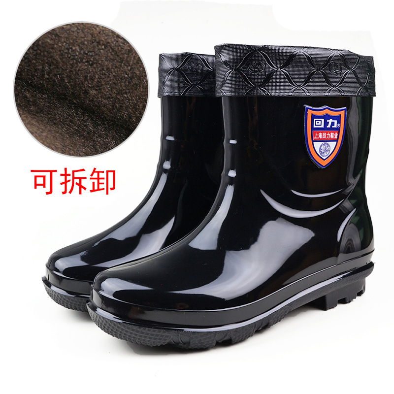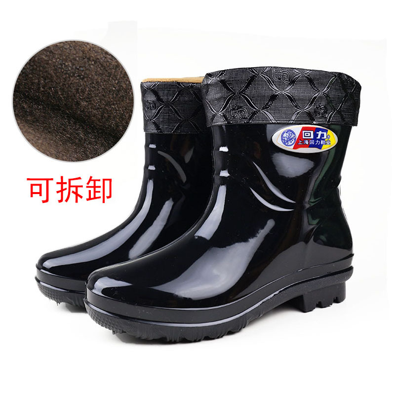 재고 공급 Huili 레인 부츠 588 짧은 튜브 남자의 방수 신발 노동 보호 두꺼운 바닥 기모 낮은 측면 레인 부츠 도매스토어 가기