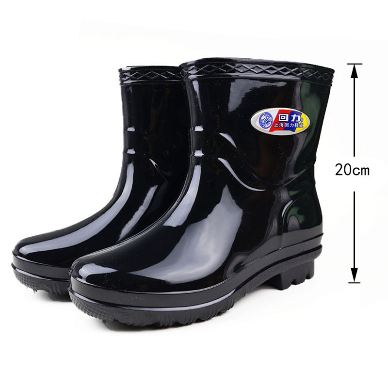 재고 공급 Huili 레인 부츠 588 짧은 튜브 남자의 방수 신발 노동 보호 두꺼운 바닥 기모 낮은 측면 레인 부츠 도매