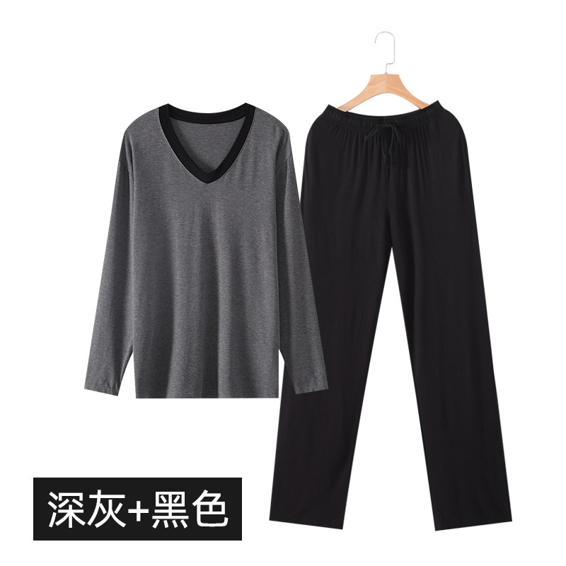 2 PC 세트 모달 남자의 긴 소매 바지 세트 얇은 느슨한 플러스 사이즈 캐주얼 스포츠 잠옷 가정 옷