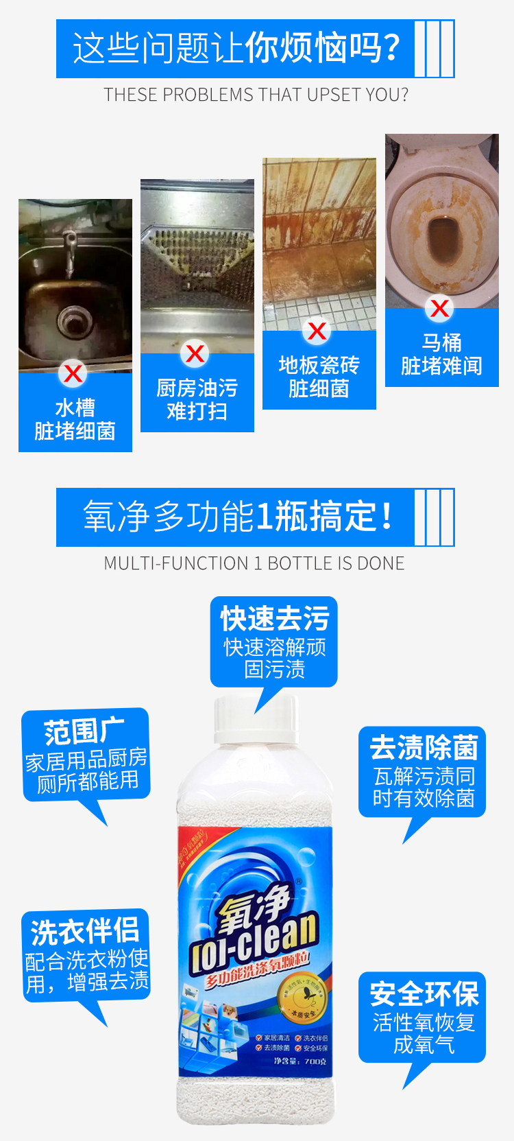 산소 그물 다기능 세척 산소 입자 정품 세라믹 타일 스테인레스 욕실 세제 세제 분말