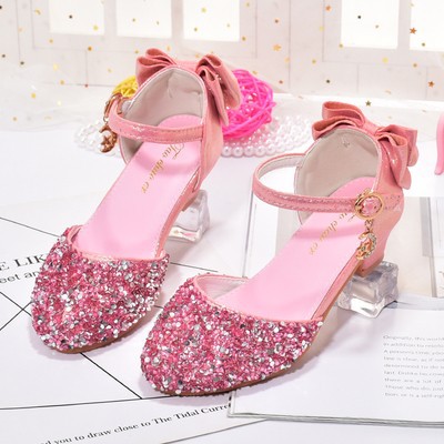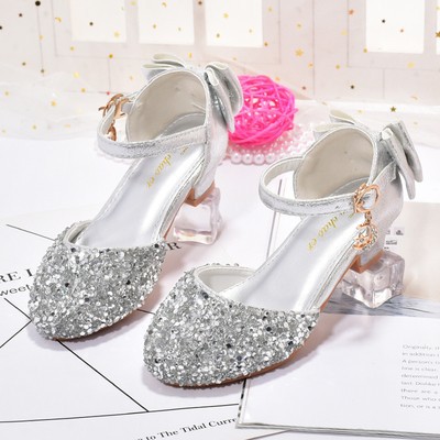 여아 하이힐 신발 작은 공주 공연 가죽 신발 실버 어린이 매칭 원피스 대형 어린이 쇼 무대 크리스탈 신발스토어 가기