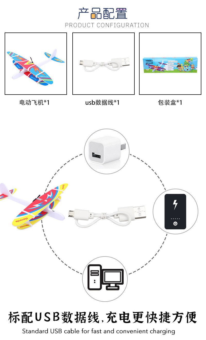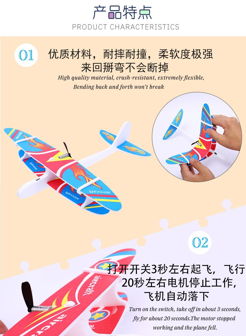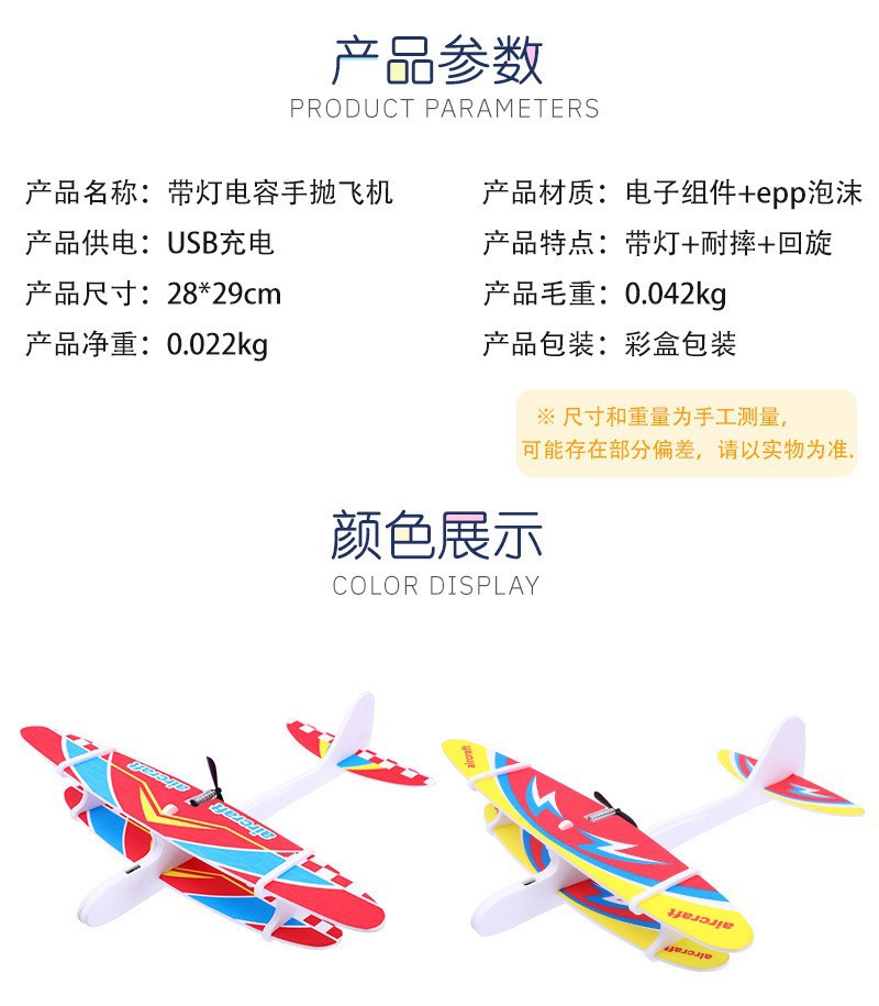 전기 커패시터 USB 충전식 손으로 던진 글라이더 낙하 방지 폼 EPP 로터리 단일 날개 라이트 이중 날개 전투기스토어 가기