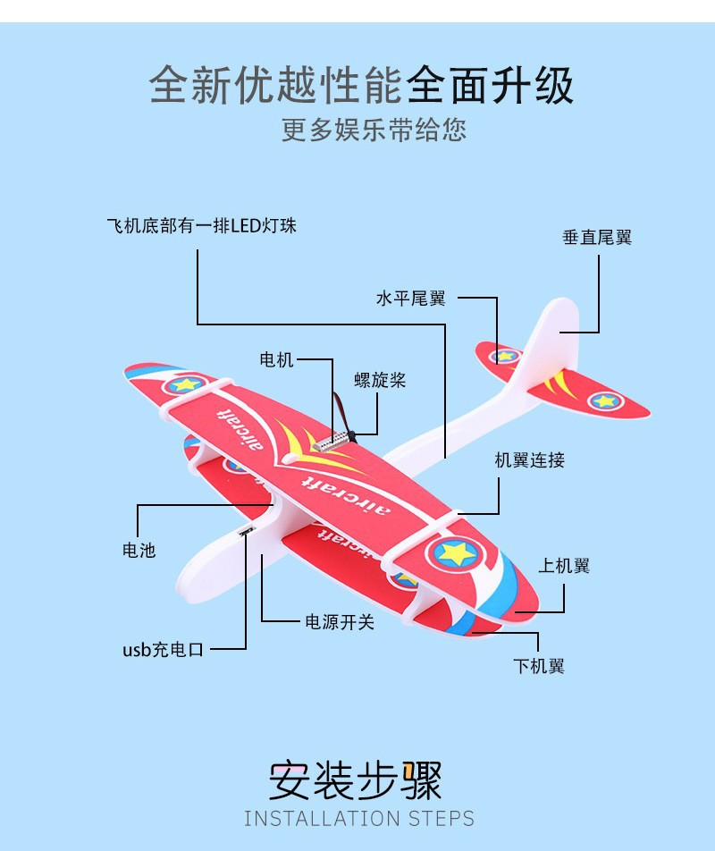 전기 커패시터 USB 충전식 손으로 던진 글라이더 낙하 방지 폼 EPP 로터리 단일 날개 라이트 이중 날개 전투기