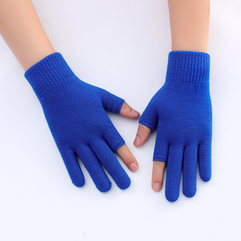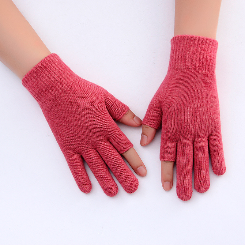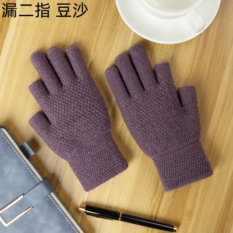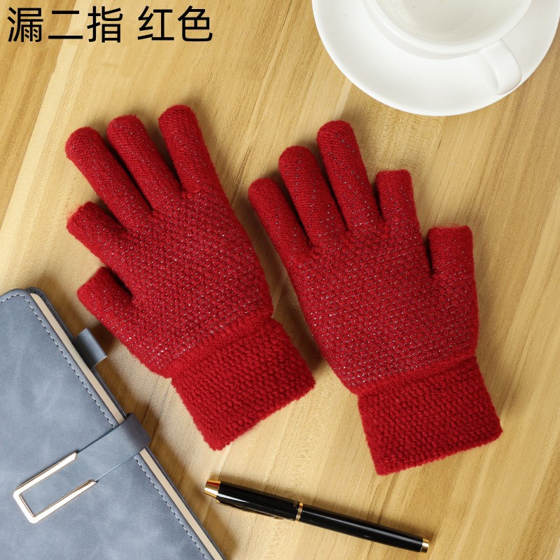 여성용 가을 겨울 반장갑, 두 손가락 노출형, 방한 보온, 라이딩, 니트, 운전, 터치스크린, 학생용 장갑