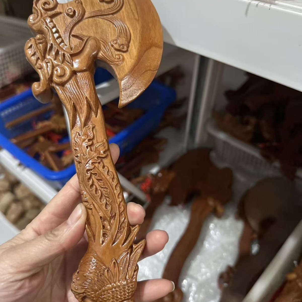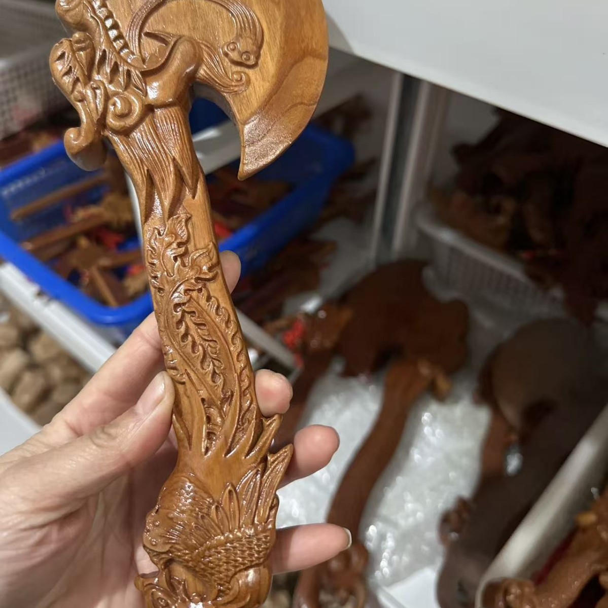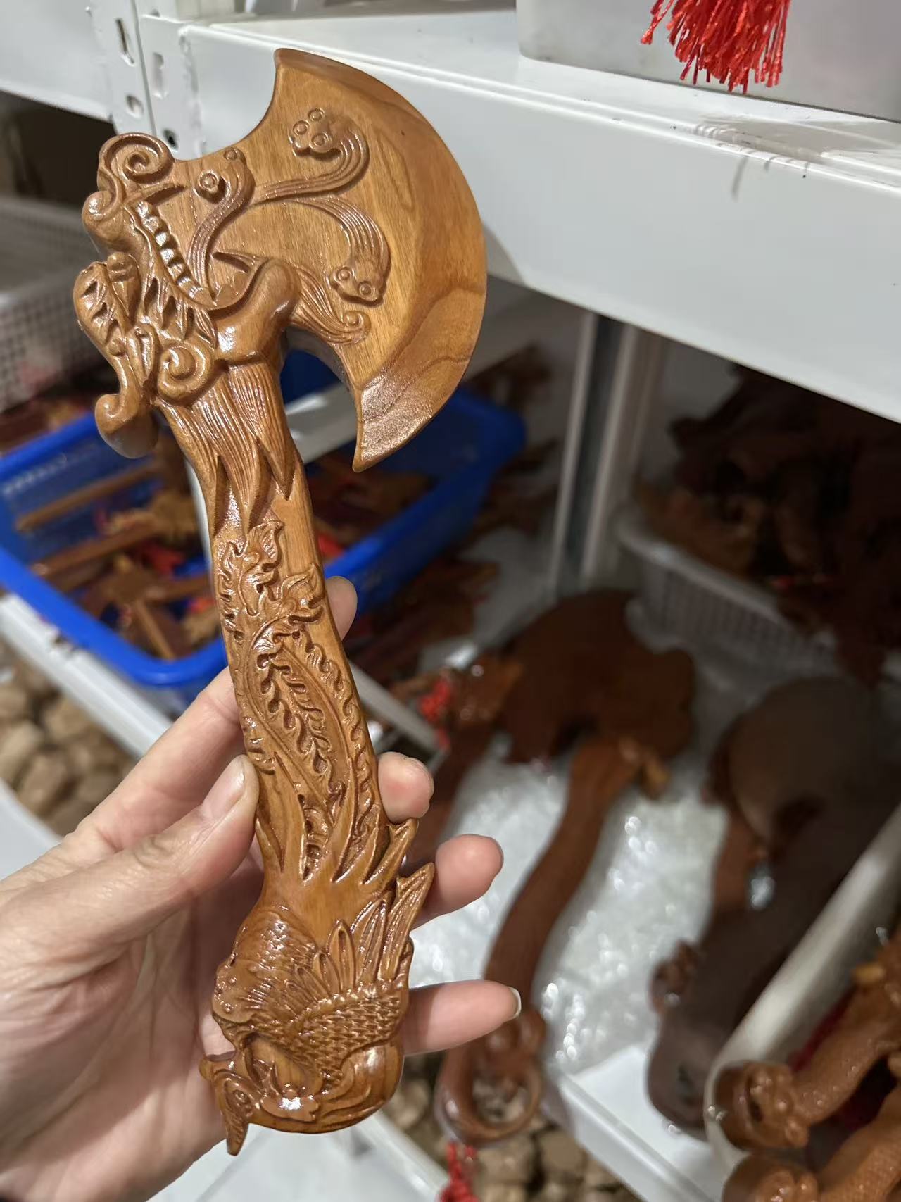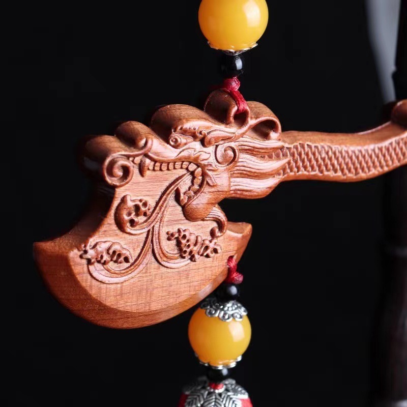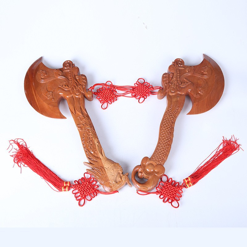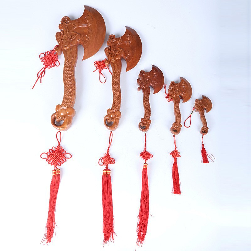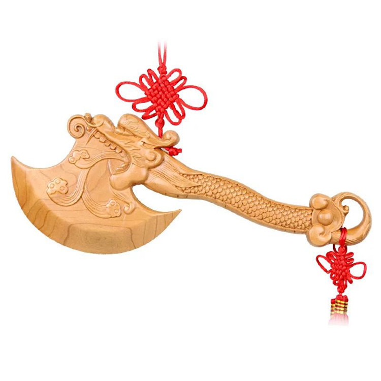 제조 업체 산동 Feicheng 복숭아 나무 도끼 용 머리 도끼 펜던트 장식품 거실 어린이 방 나무 조각 공예