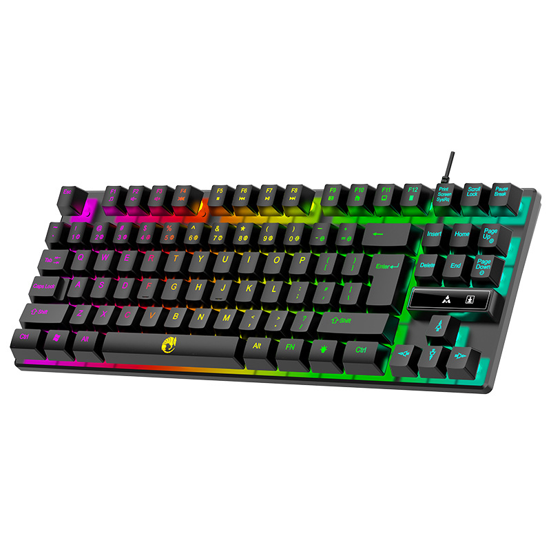 레이커이 K87 유선 키보드 87키 기계식 느낌의 레인보우 스위칭 발광 키보드, 키캡이 떠 있는 게이밍 키보드