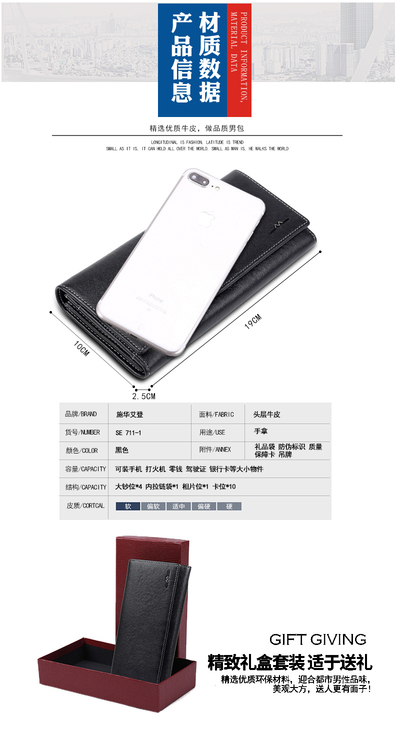 신제품 천연 가죽 남성용 롱 핸드백 다중 카드 슬롯 지갑 비즈니스 청년용 소가죽 지갑 지퍼형 돈 지갑 도난 방지 디자인스토어 가기