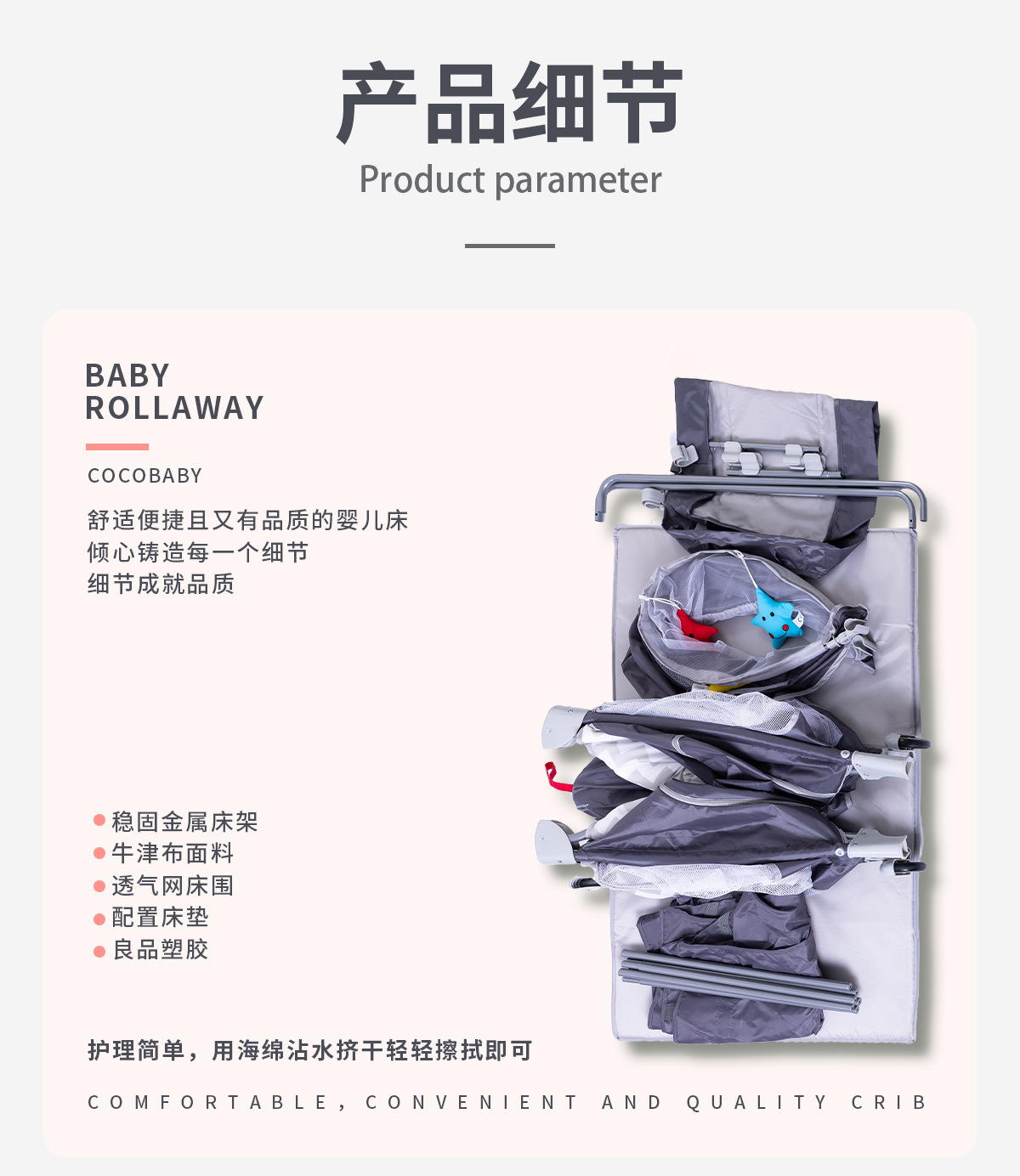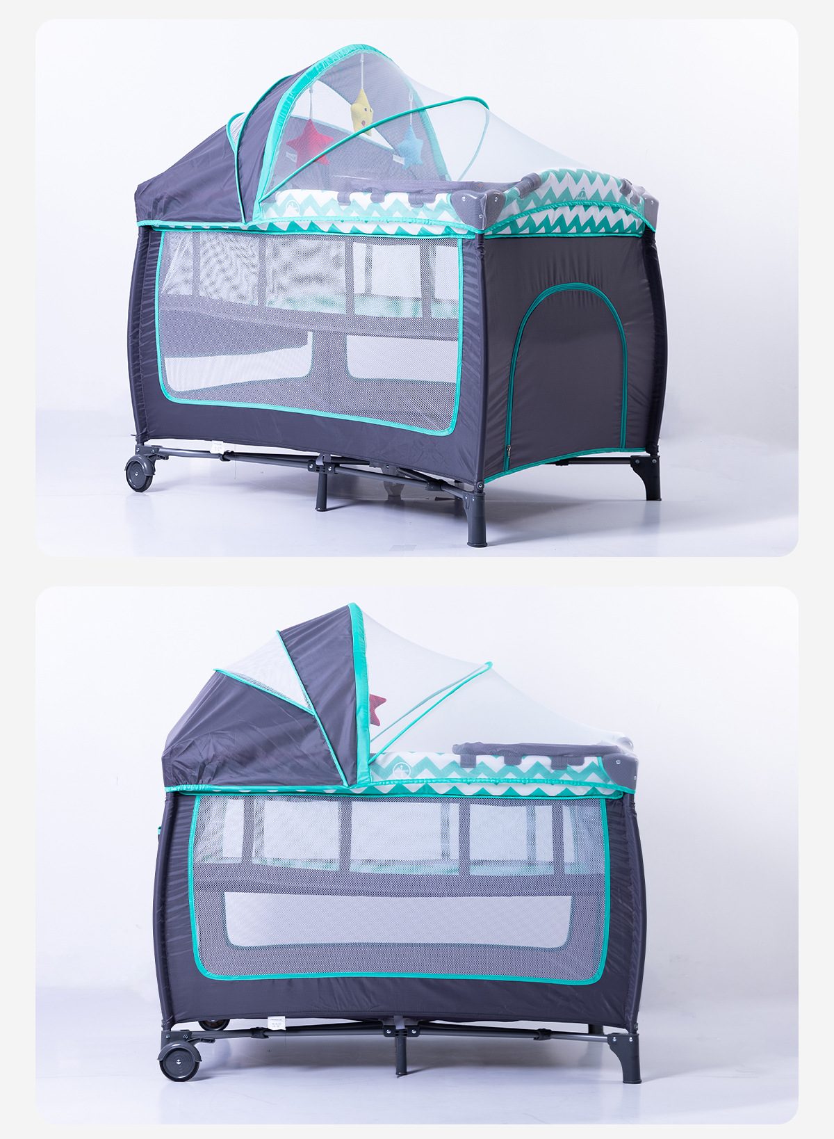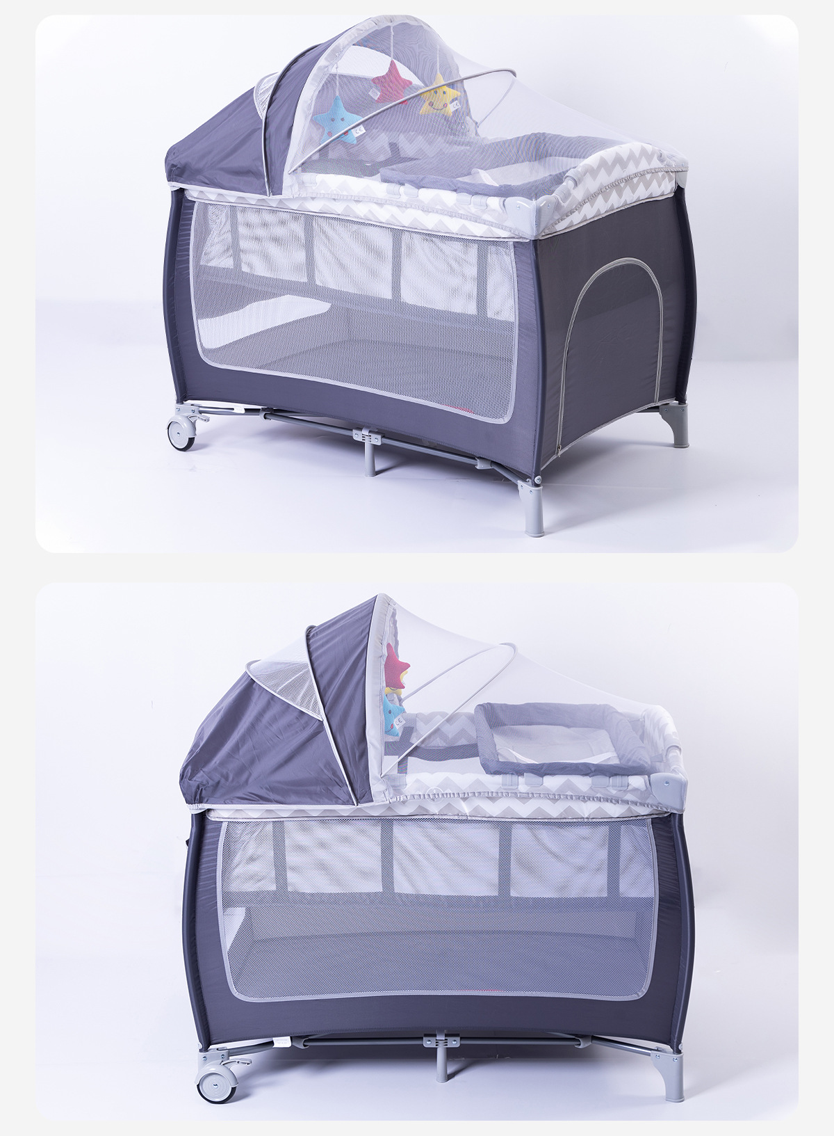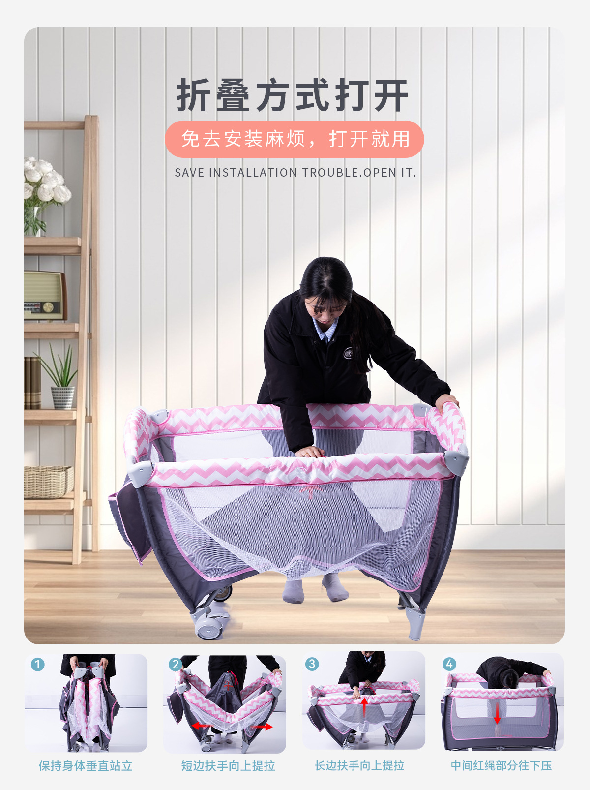 产品功能:可移动、折叠、睡觉、游戏、换洗尿布台