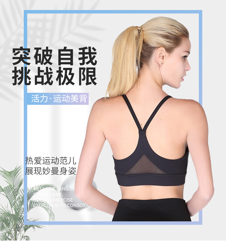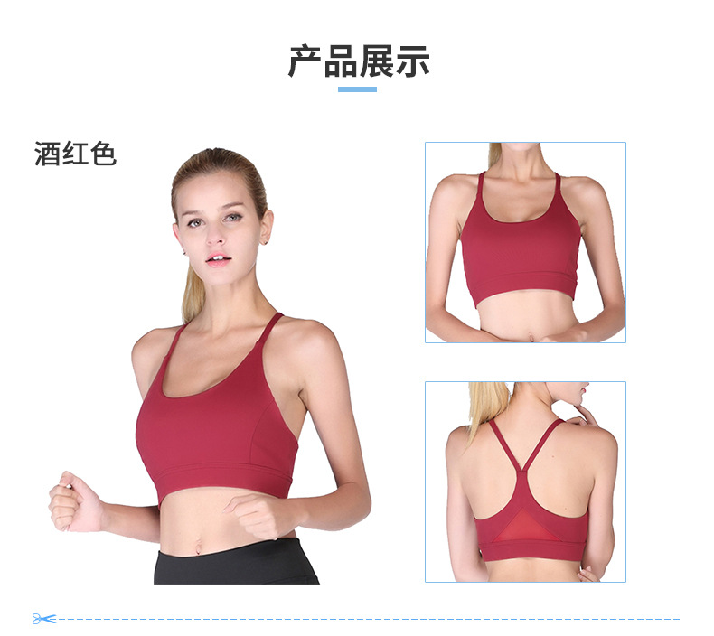 인기 있는 얇은 스트랩 아름다운 등 스포츠 브라, 충격 방지 런닝, 와이어 프리, 가슴 패드가 있는 새로운 스포츠 브라, 통기성 및 땀 흡수성스토어 가기