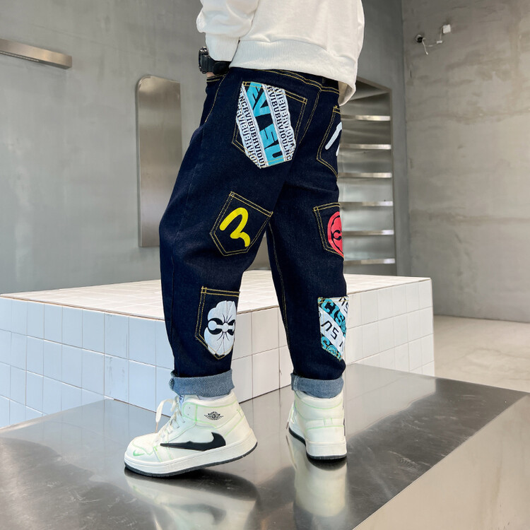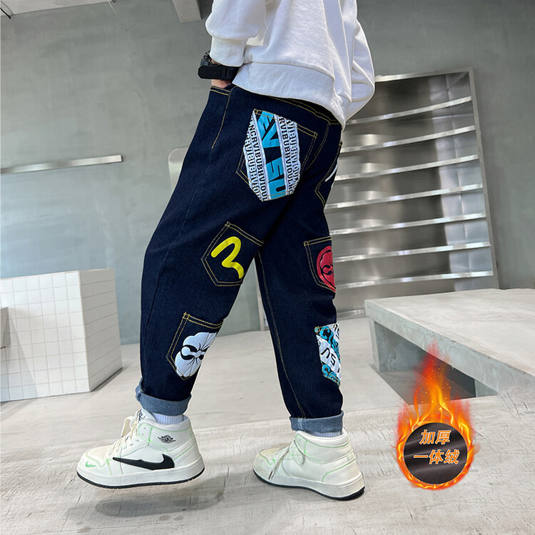 남아용 봄가을 멀티 포켓 프린트 데님 팬츠 2026 중대형 아동용 일체형 기모 데님 롱팬츠 호주 직리 아동복스토어 가기