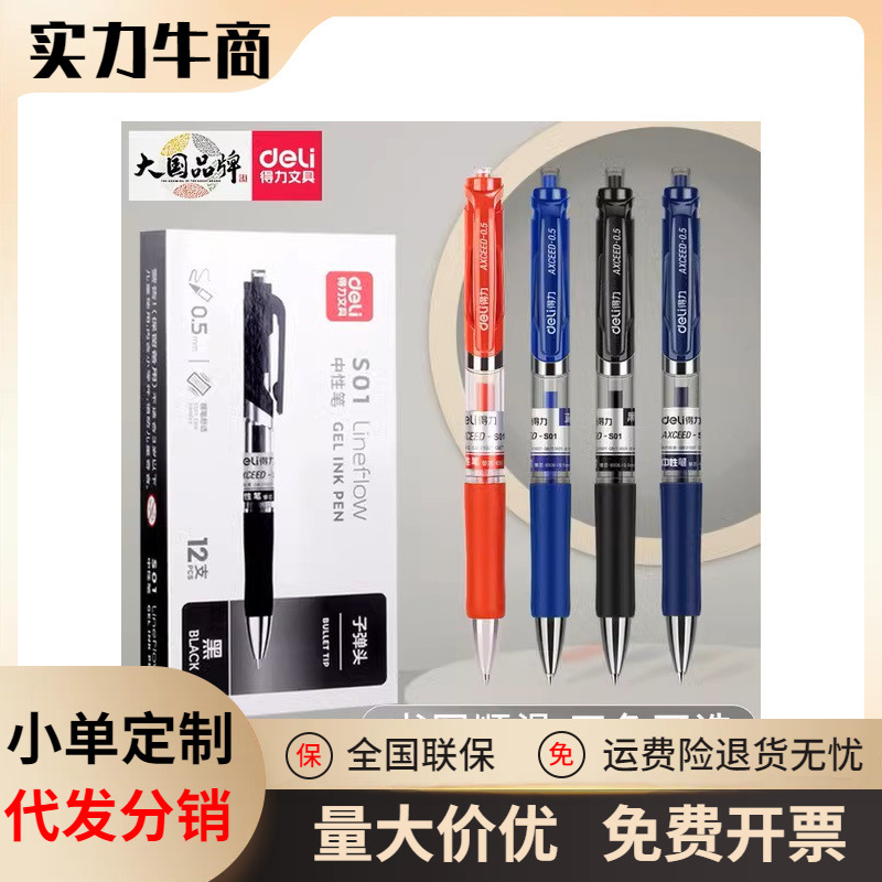 델리 S01 프레스 젤 펜 0.5mm 총알 워터 펜 스프링 헤드 블랙 학생 노트 필기 사무실 사인 펜스토어 가기