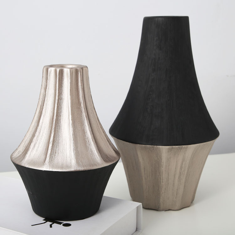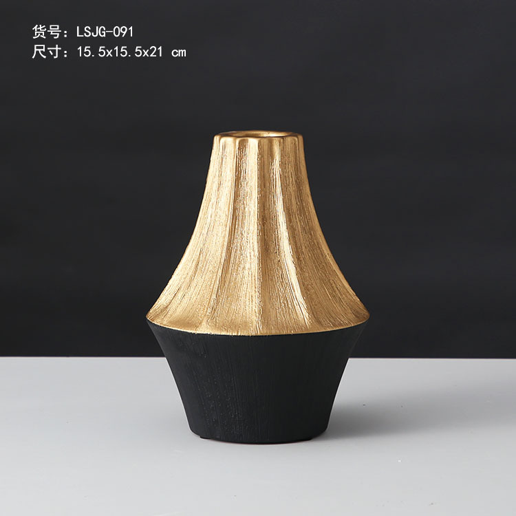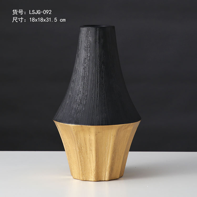 손으로 닦은 세라믹 꽃병 블랙 골드 꽃 배열 창조적 인 TV 캐비닛 모델 룸 와인 캐비닛 장식품