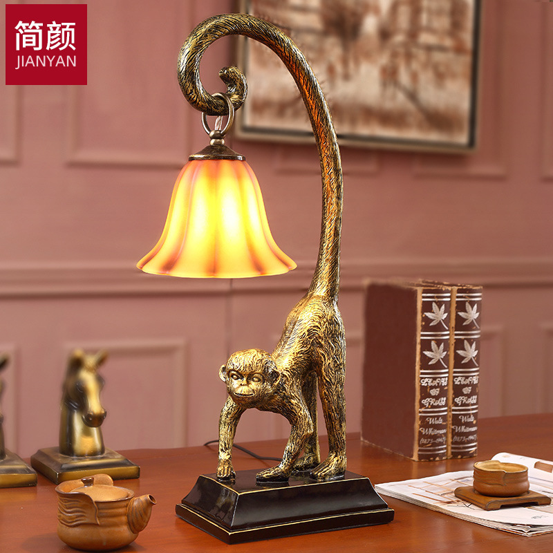 국경 거실 침실 장식 침대 옆 램프 창조적 인 성격 미국 복고풍 수지 원숭이 테이블 램프 연구 도매스토어 가기
