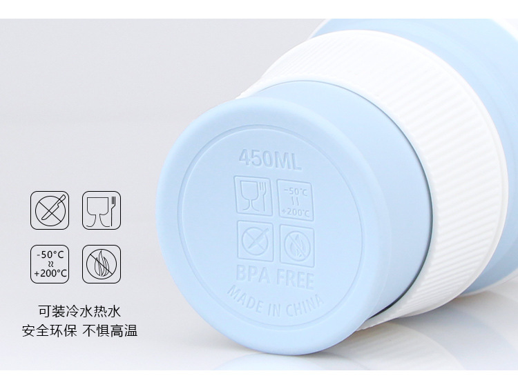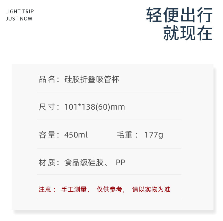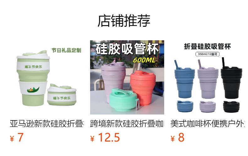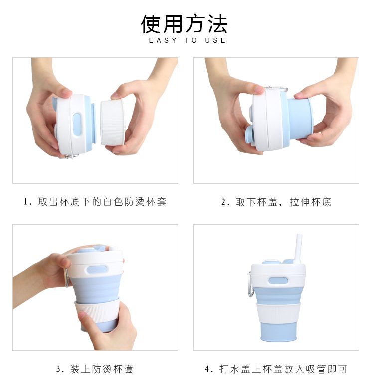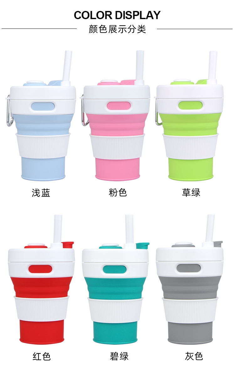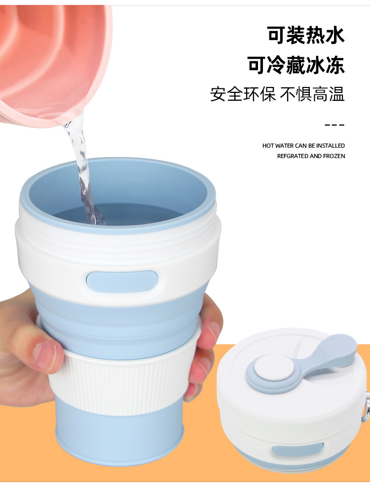 折叠咖啡杯(S12)参数:1.材质:食品级硅胶+聚丙烯PP 2.尺寸:87*140(58)mm 彩盒尺寸:98*98*68mm 3.容量:450ml 4.重量:150g 5.包装:OPP袋子+彩盒 6.箱规:49*33.5*40cm 7.装箱数量100个 8.净重:16kg 毛重:18kg