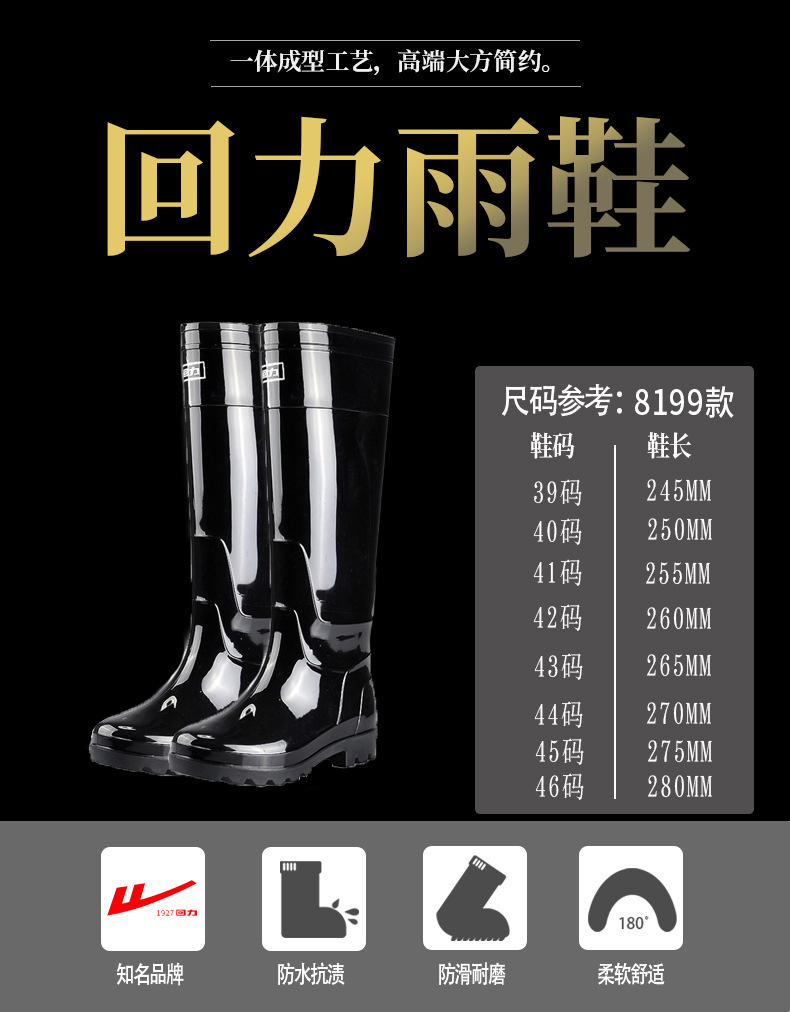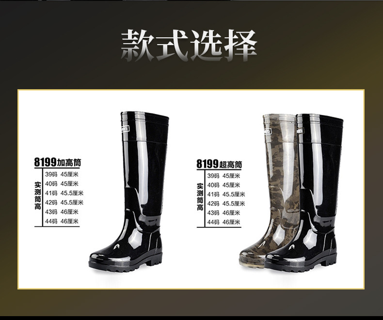 상하이 Huili 8199 엑스트라 하이 레인 부츠 남성용 내마모성 미끄럼 방지 방수 롱 튜브 워터 슈즈 남성용 낚시 레인 부츠