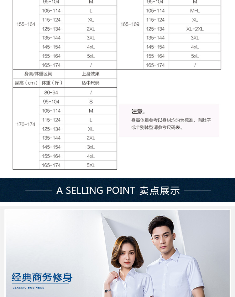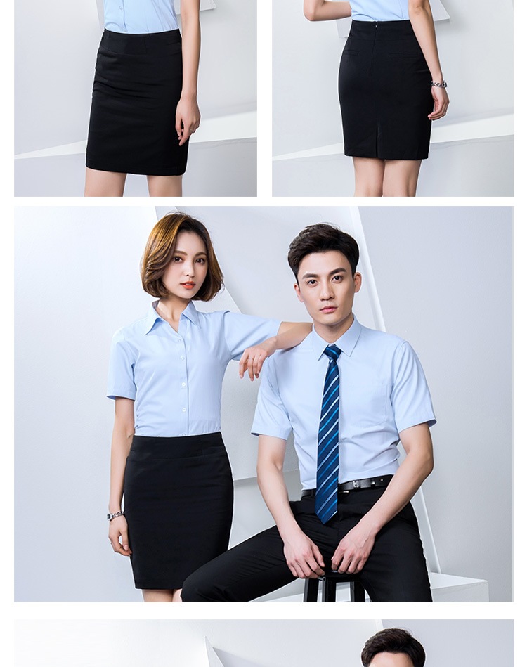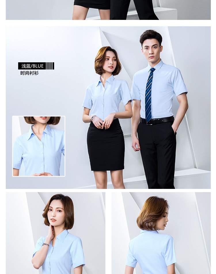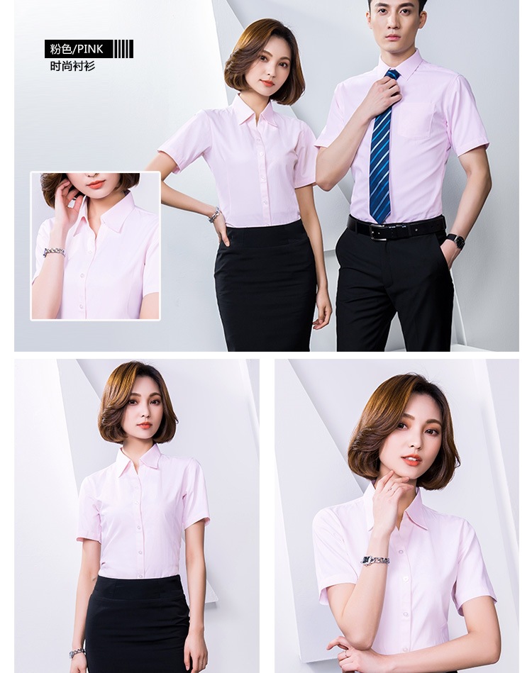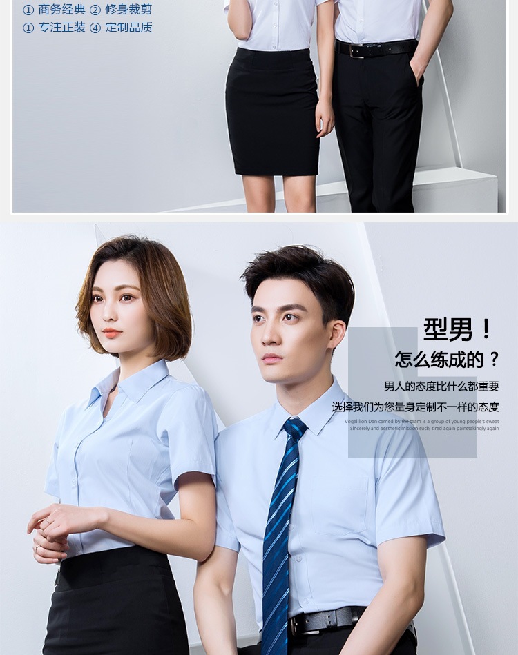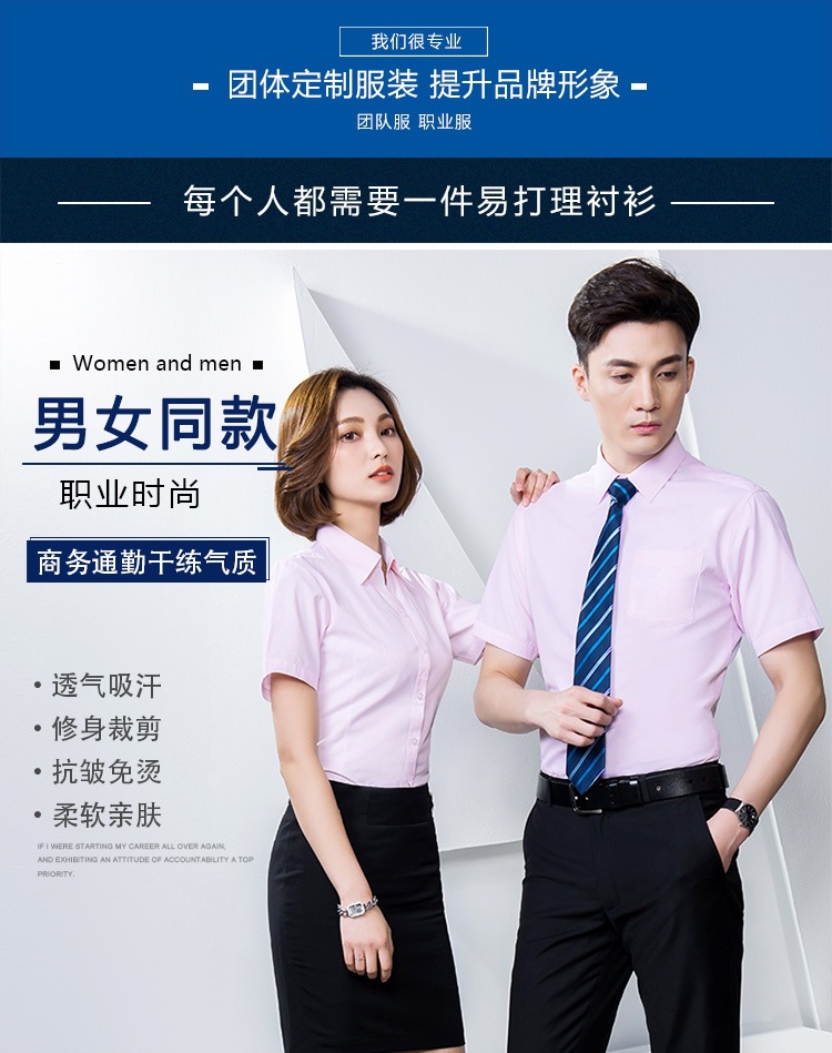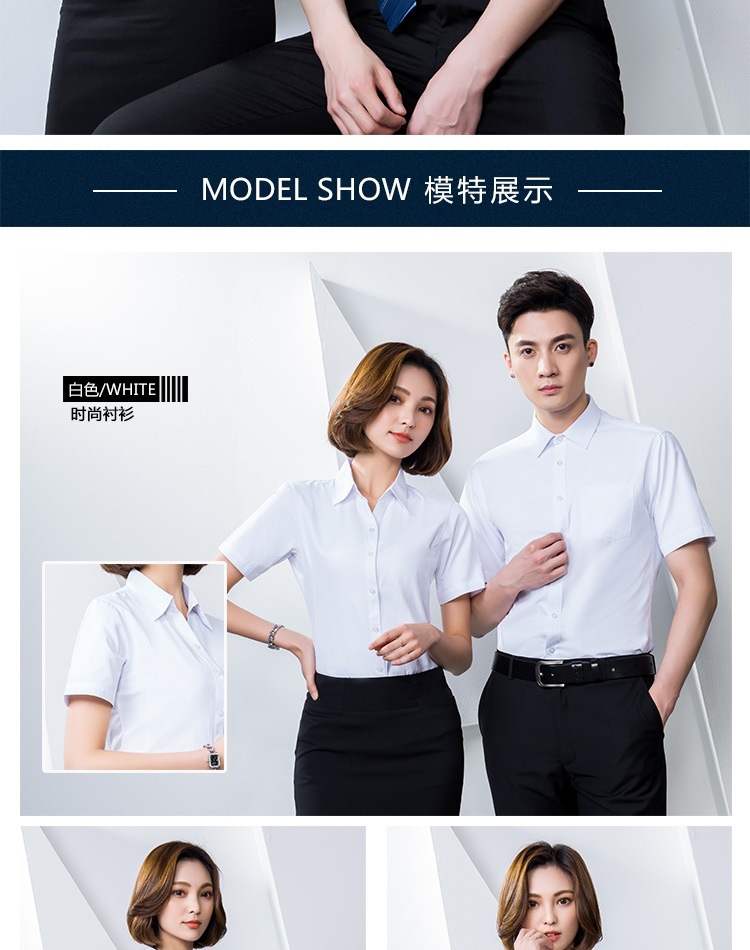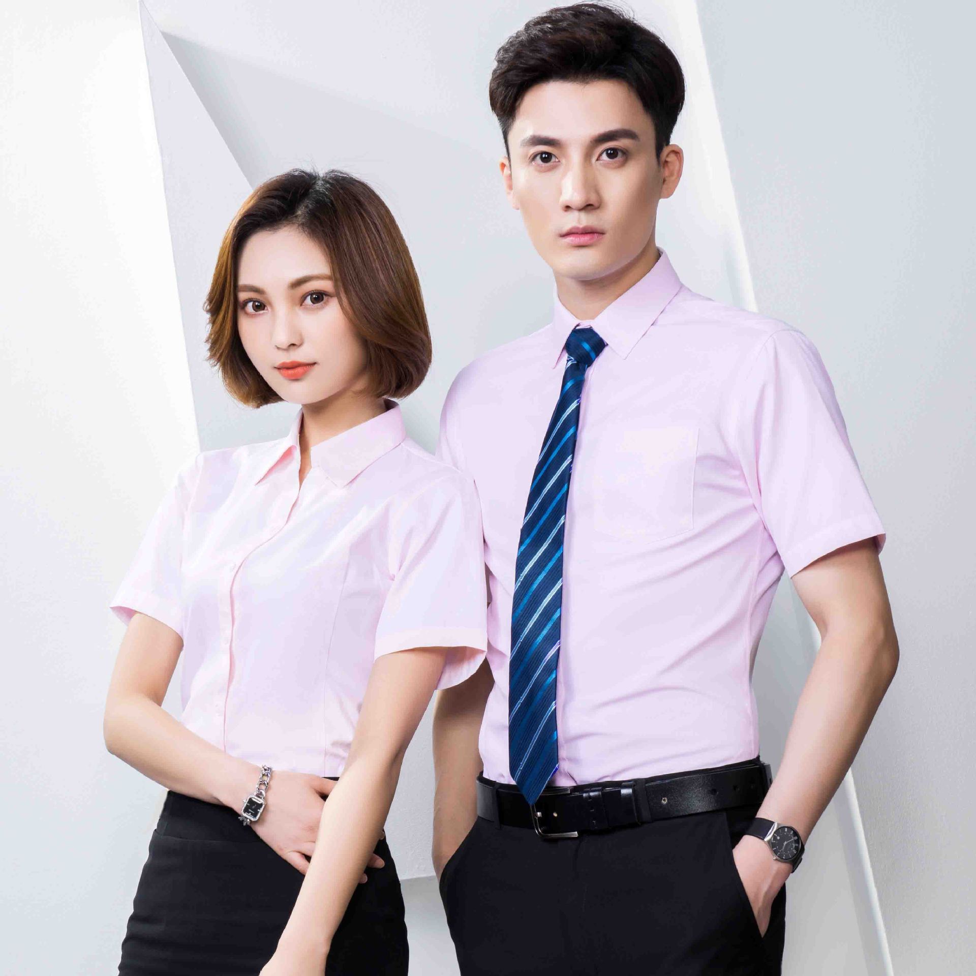반팔 셔츠 남성과 여성 동일 스타일 비즈니스 원피스 작업복 세트 비 다림질 및 주름 방지 비즈니스 착용 세트 화이트 셔츠스토어 가기