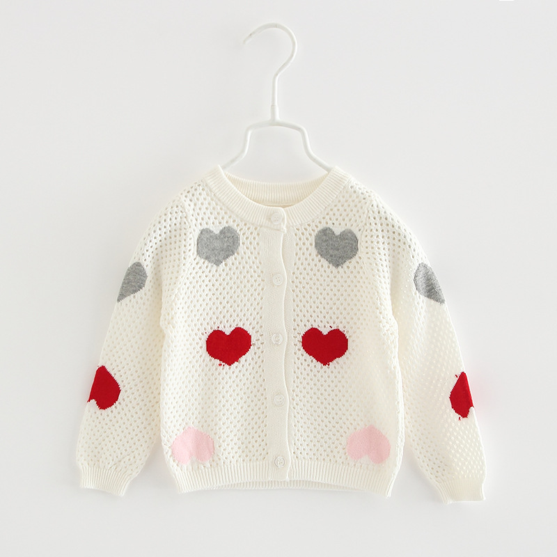 중소 어린이 봄과 가을 아기 카디건 스웨터 중공 탑 소녀 사랑 얇은 코트