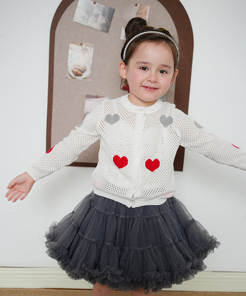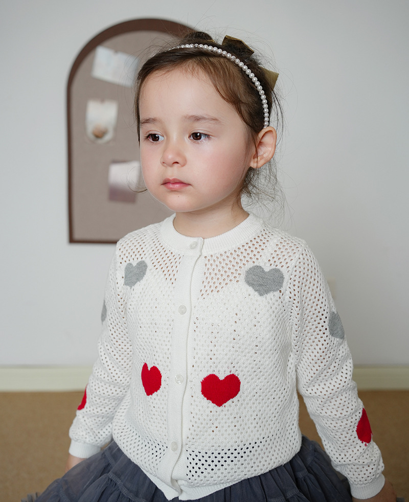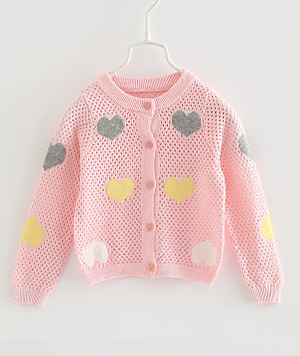 宝贝名称 :  中小童圆领爱心镂空女童针织开衫