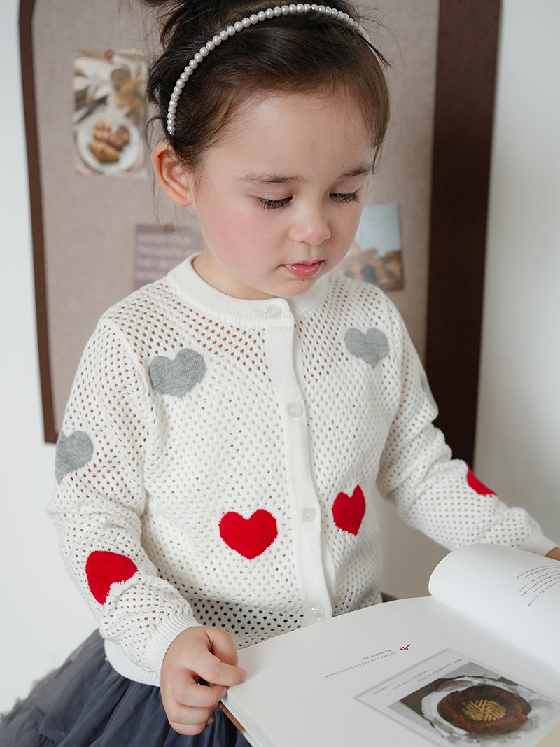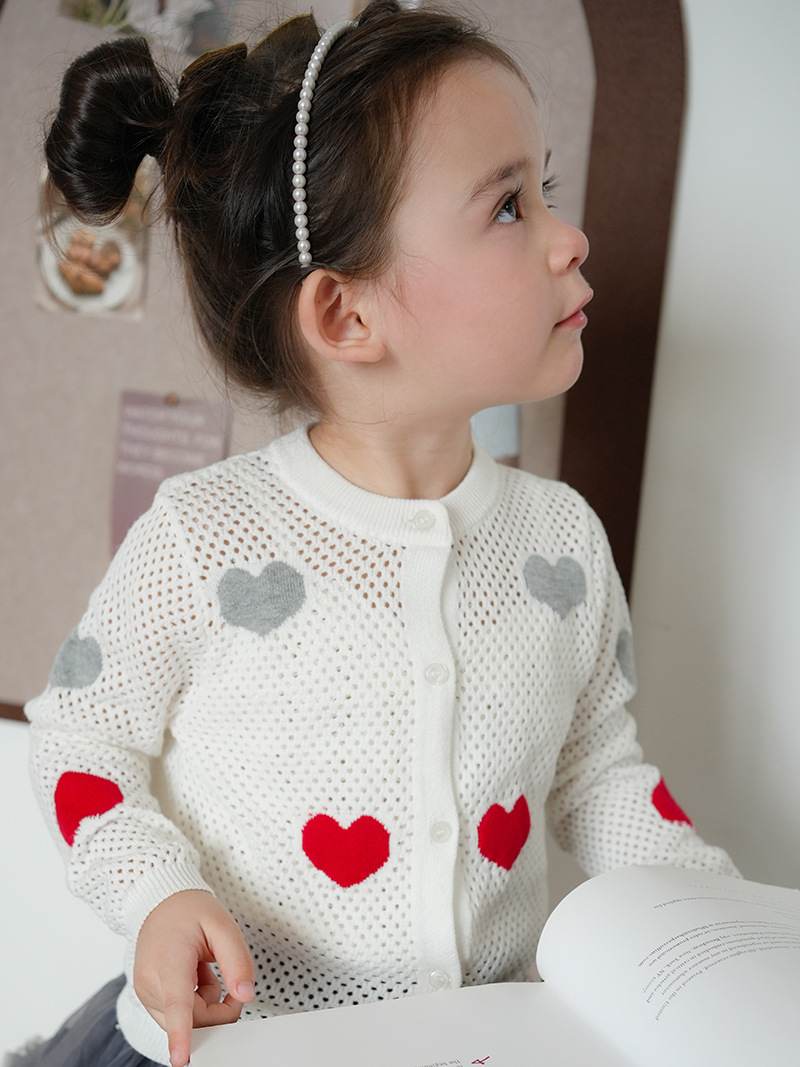 중소 어린이 봄과 가을 아기 카디건 스웨터 중공 탑 소녀 사랑 얇은 코트스토어 가기