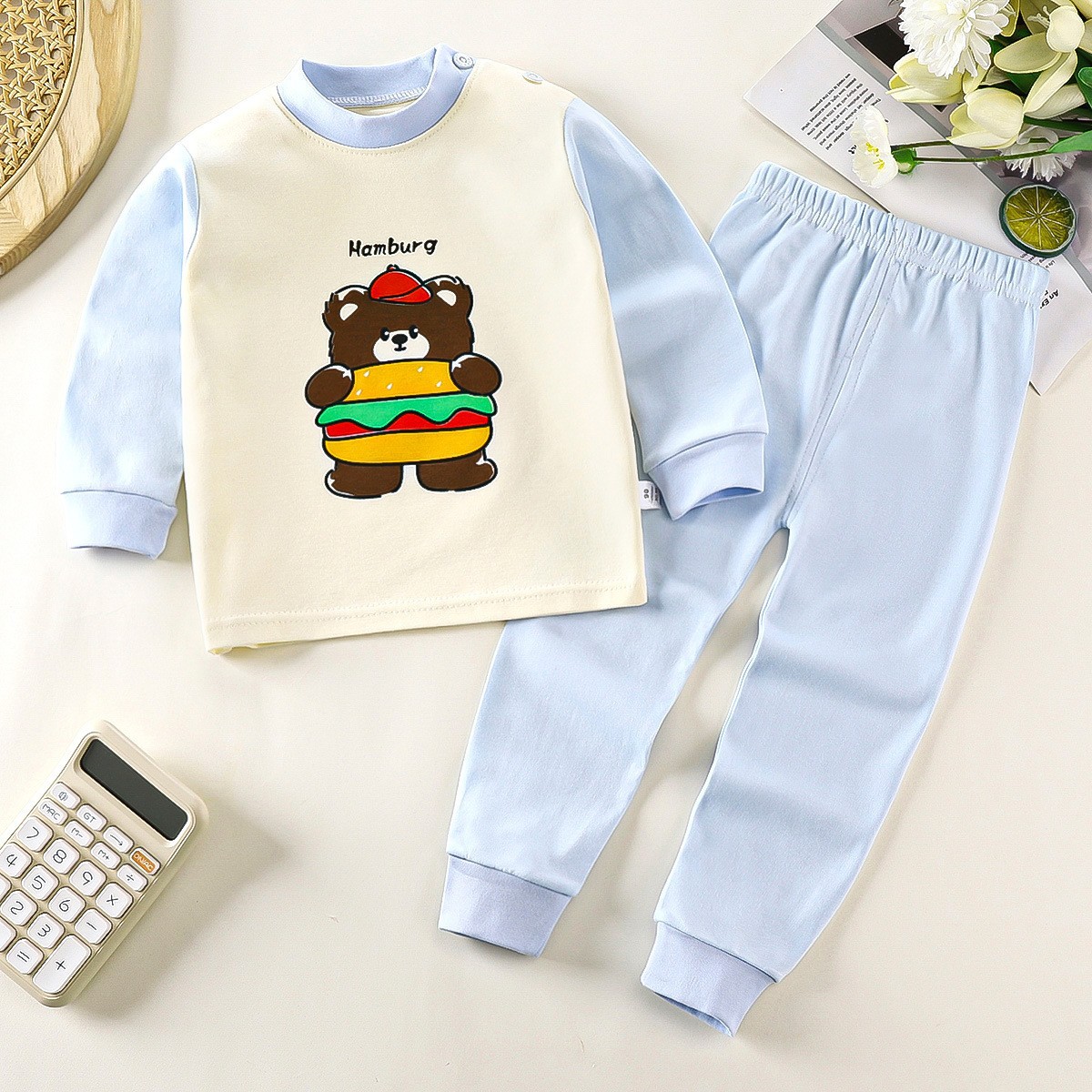 40 원사 가을 새로운 어린이 속옷 세트 면 가을 옷 가을 바지 소년의 가정 옷 아기 면 울 가정 옷스토어 가기