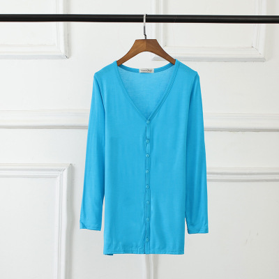 봄과 여름 여성용 모달 니트웨어 가디건 긴 소매 중간 길이 여성용 외부 숄 에어컨 셔츠 자외선 차단제 얇은스토어 가기