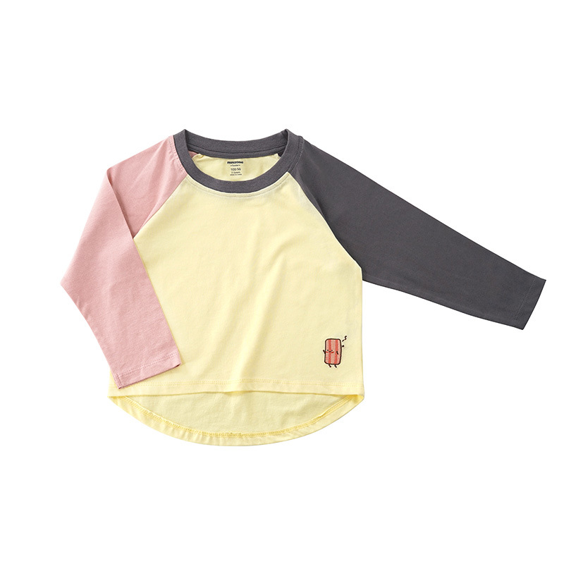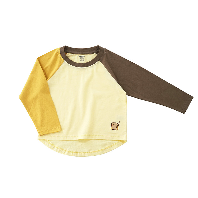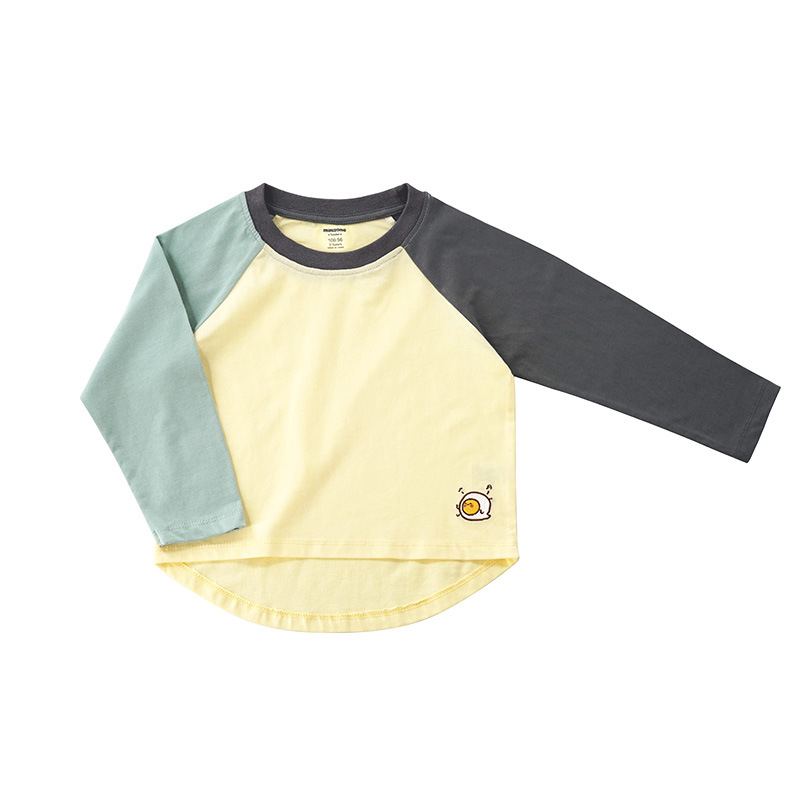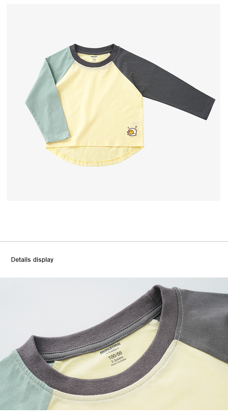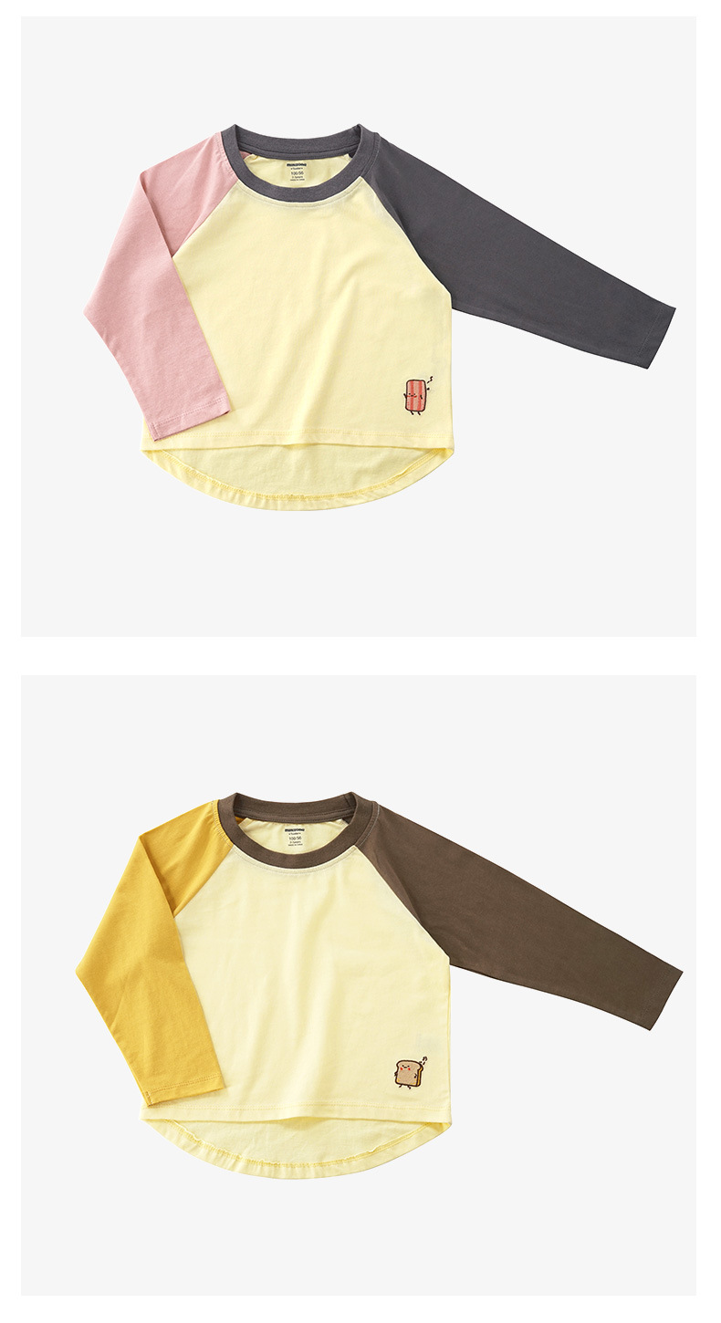 Minizone 가을 어린이 이른 봄 새로운 대비 색상 라글란 긴 소매 티셔츠 큰 어린이 캐주얼 라운드 넥 탑 트렌디스토어 가기
