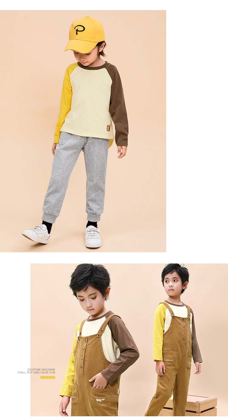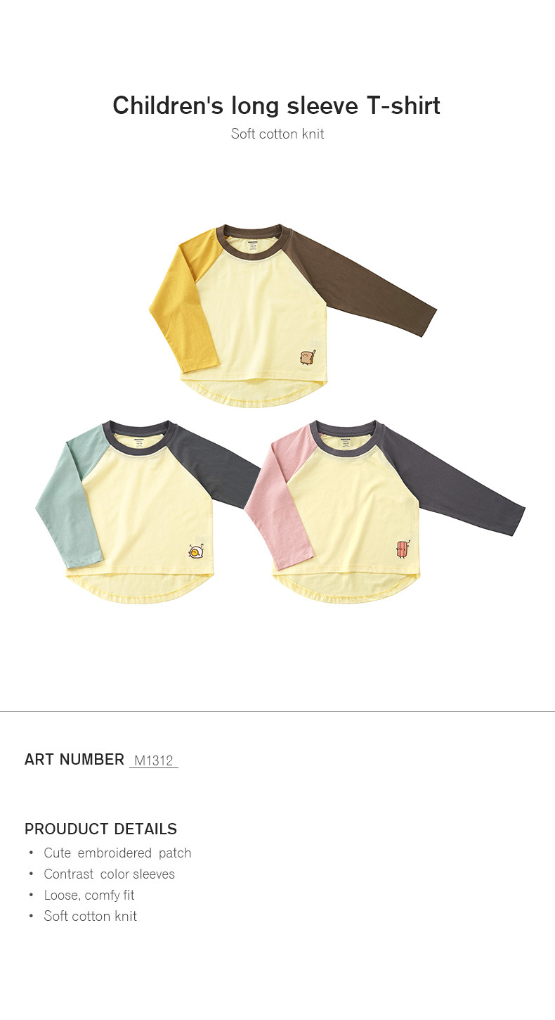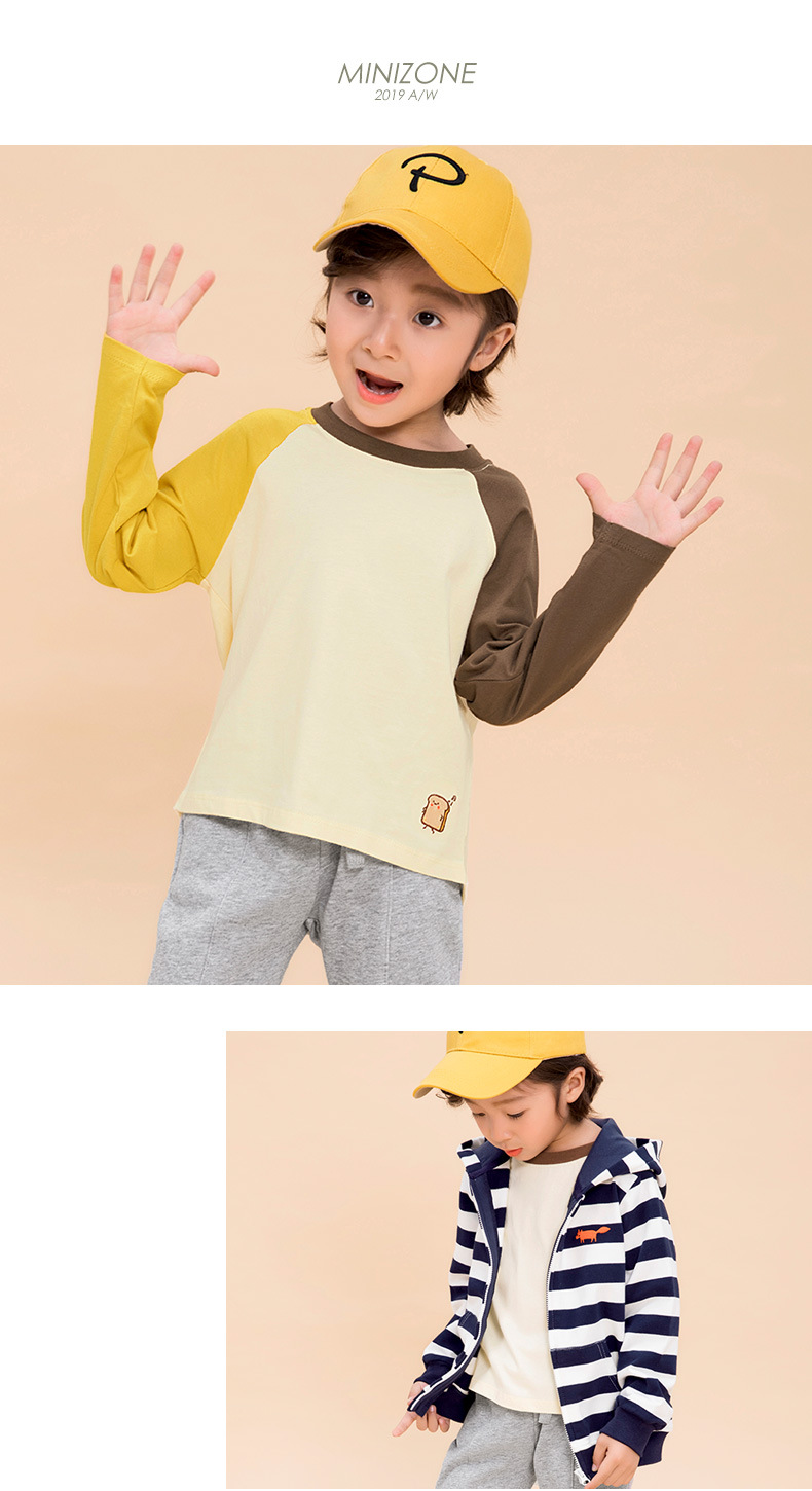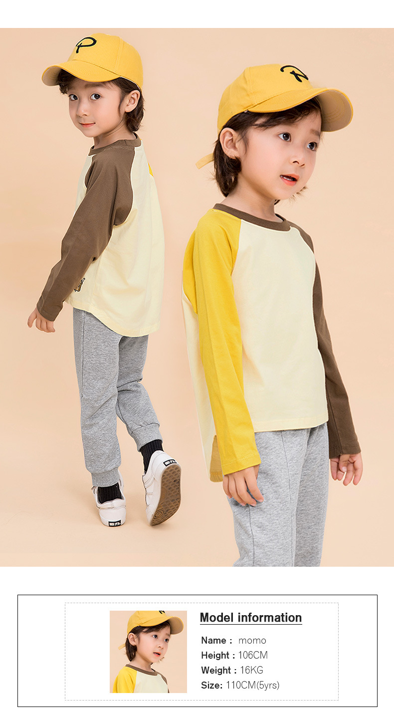 Minizone 가을 어린이 이른 봄 새로운 대비 색상 라글란 긴 소매 티셔츠 큰 어린이 캐주얼 라운드 넥 탑 트렌디스토어 가기