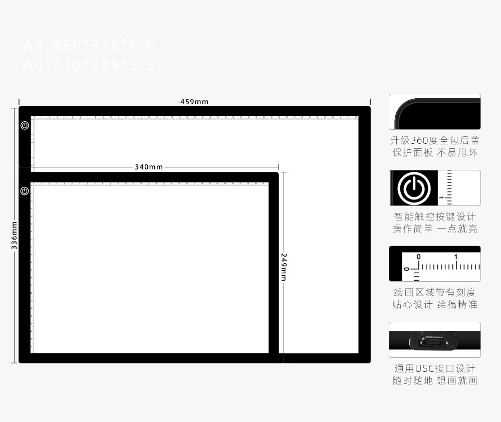 • A4 자기 어트랙션 복사 테이블 (3 단 기어/무단 디밍) + USB 라인 + 4 자석