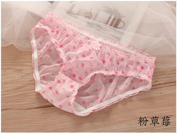 일본 속옷 여성 소녀 달콤한 통기성 딸기 메쉬 원근법 낮은 허리 브리프 만화 공장 콘센트스토어 가기