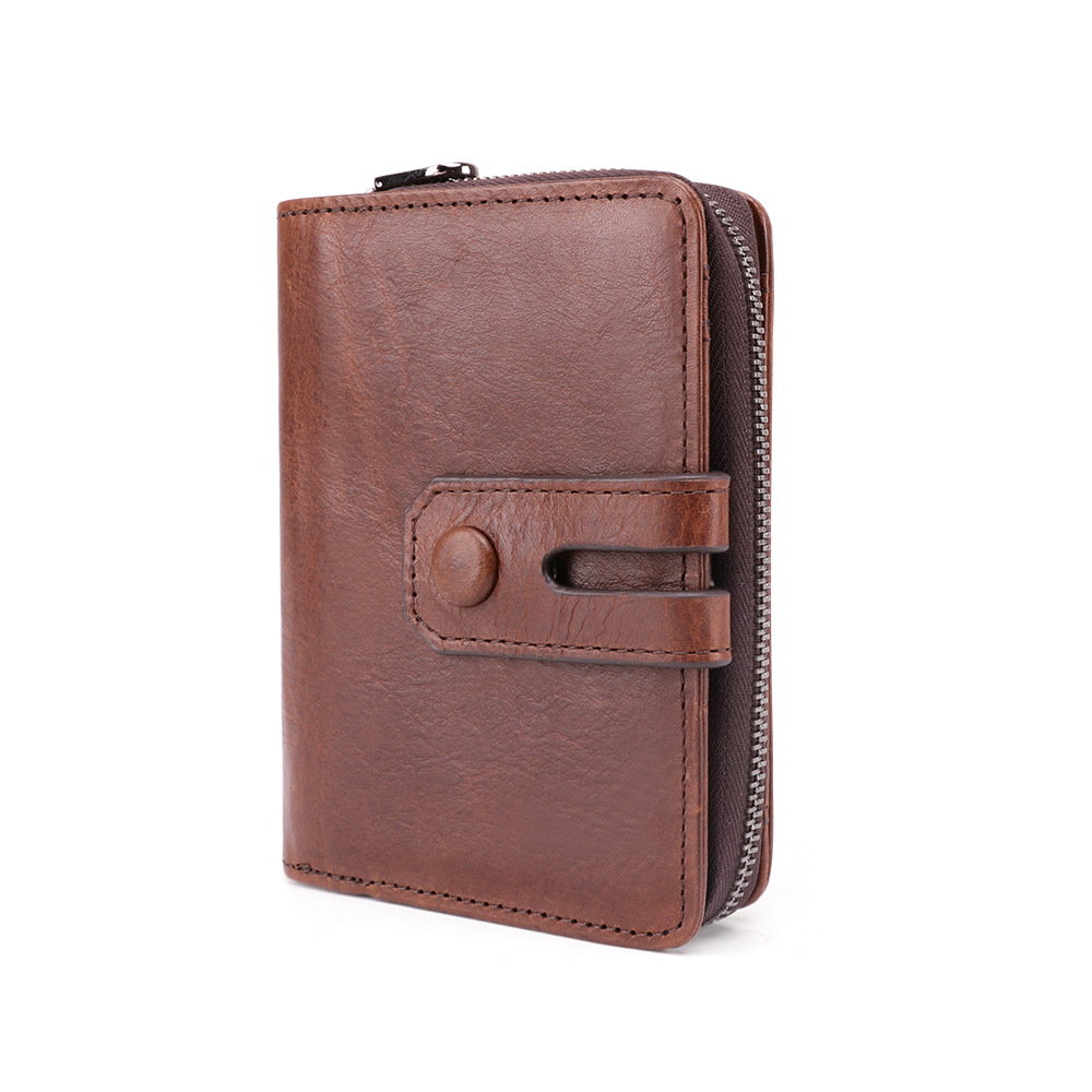 남성용 천연가죽 도난방지 지갑, 레트로 패션, 멀티 카드 슬롯, 더블 지퍼 카드홀더, 고급스러운 캐주얼 동전 지갑