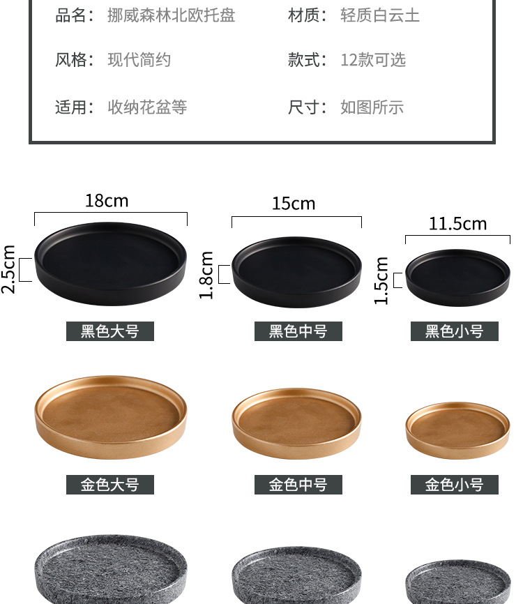 유럽식 시멘트 세라믹 화분 골든 화이트 블랙 스톤 컬러 트레이 섀시 베이스 대형 중형 스몰 사이즈