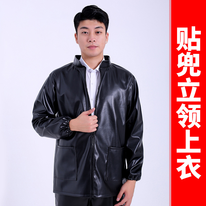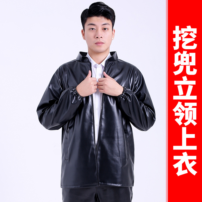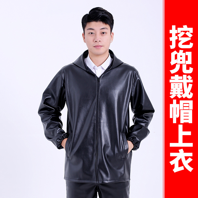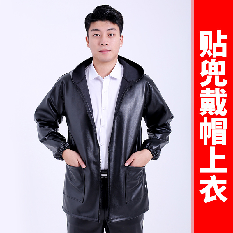 가죽 남성용 후드 얇은 중년 남성용 중간 길이 오토바이 내유성 방수 방풍 승마 노동 보호 pu 작업복