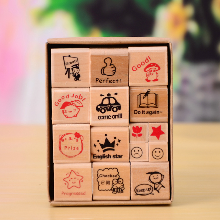 새로운 만화 교사 의견 격려 인감 영어 버전 15 나무 박스형 어린이 선물 물개 도매스토어 가기