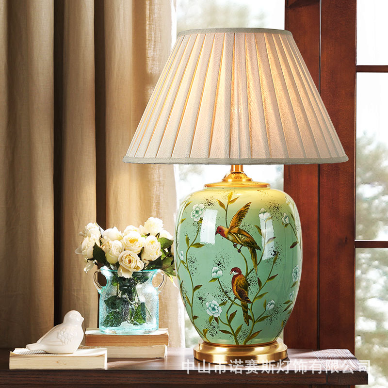 아메리칸 스타일 빌라 대형 거실 테이블 램프 하이 엔드 호텔 홀 룸 모델 홈 장식 모든 구리 세라믹 테이블 램프